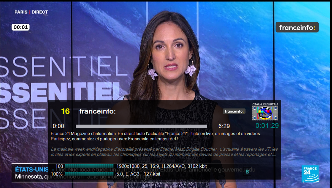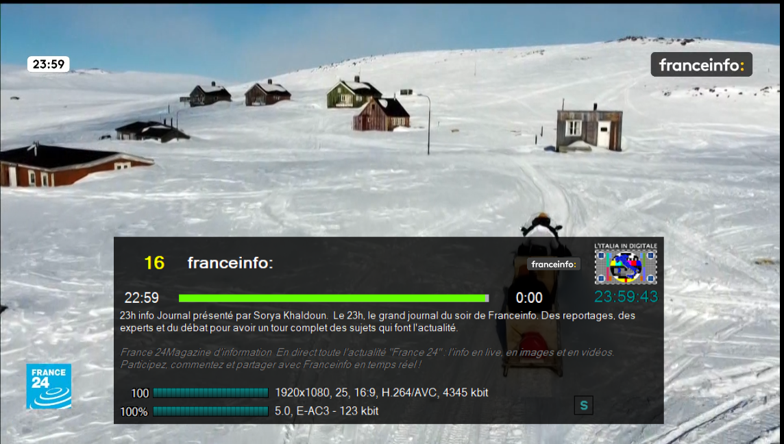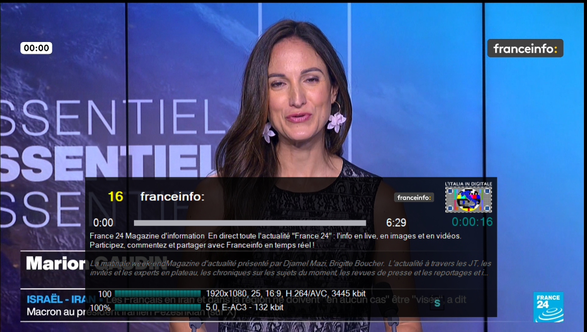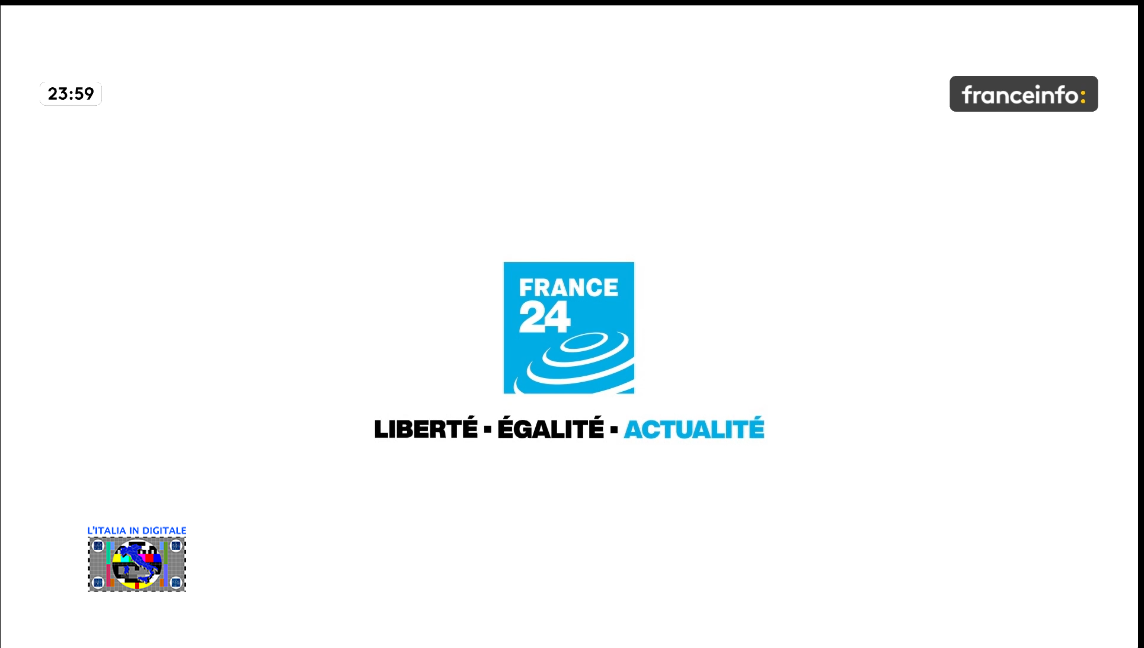 In alcune fasce orarie franceinfo: ripete l’all-news FRANCE 24 con entrambi i loghi in sovraimpressione.