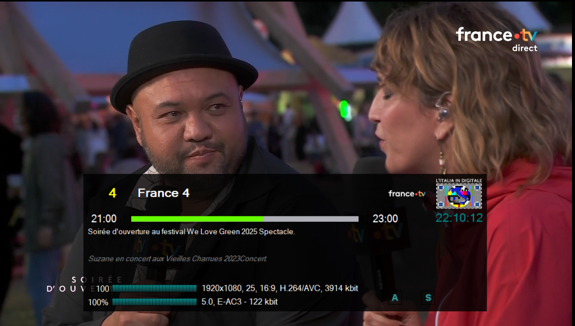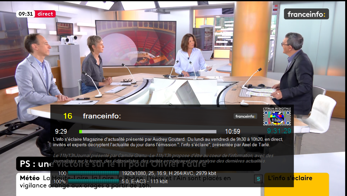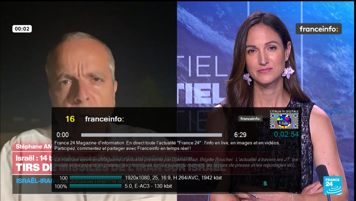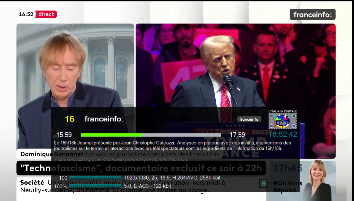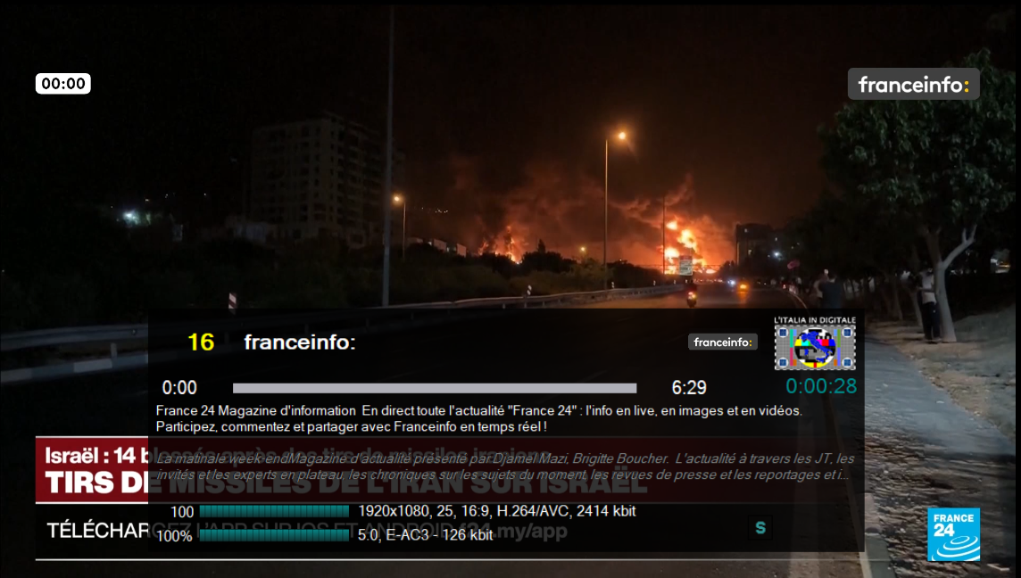 In alcune fasce orarie franceinfo: ripete l’all-news FRANCE 24 con entrambi i loghi in sovraimpressione.