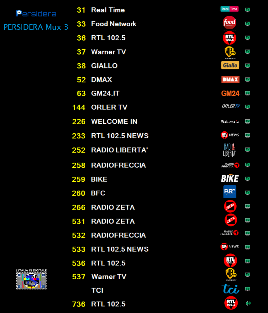In contemporanea con l’inserimento nel PERSIDERA Mux 1