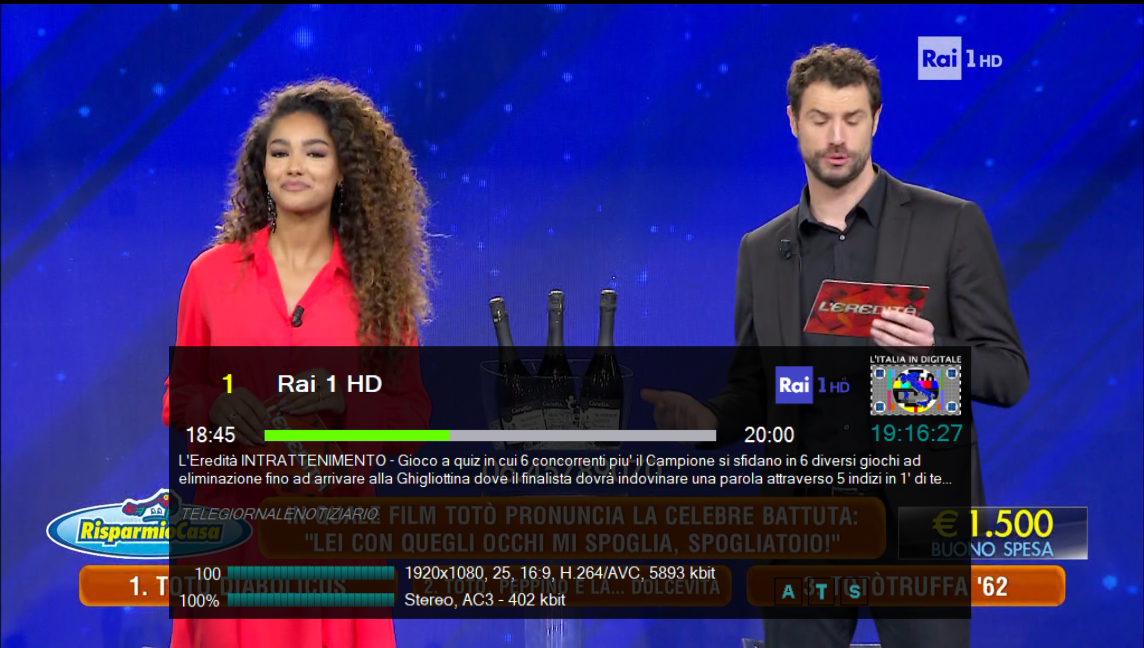 Le 2 principali reti generaliste da oggi trasmettono in questo bouquet, in alta definizione sulle prime numerazioni del telecomando,
