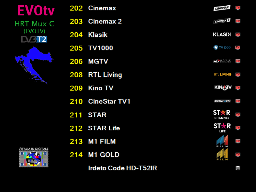 Nell’ HRT MUX C, dove sono veicolati i canali a pagamento di EVO TV,
