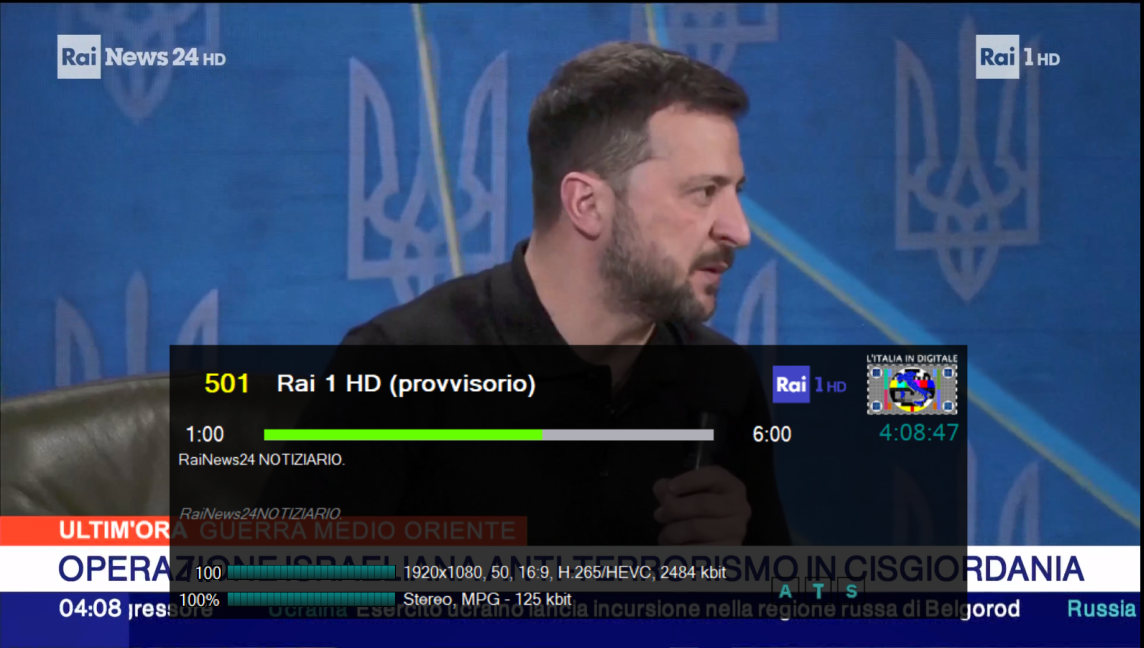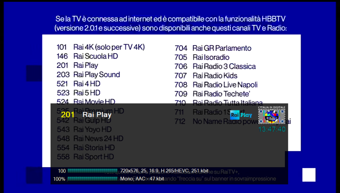 Al tasto 25 del telecomando è stato aggiunto Rai Premium HD in H.265/HEVC HD con la risoluzione video 1920×1080.