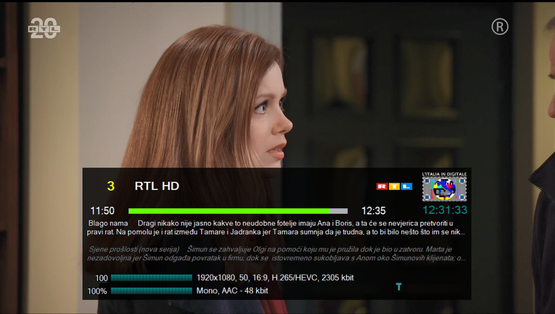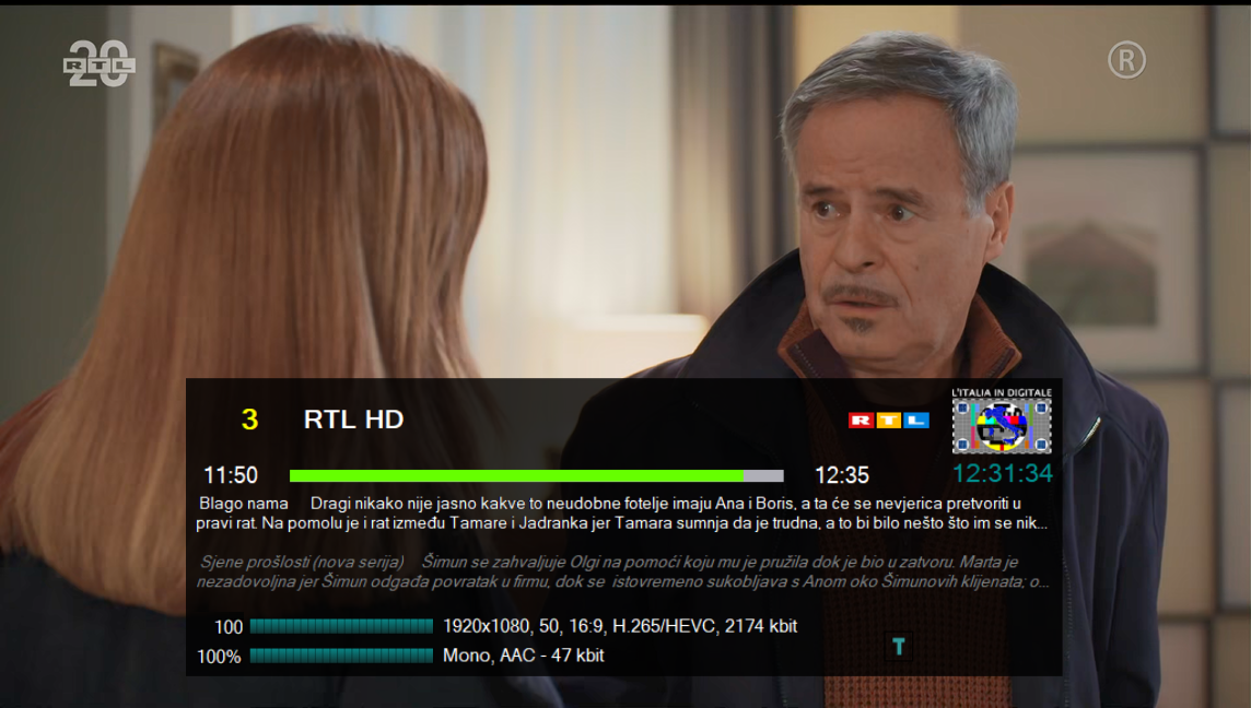 Per quanto riguarda il marchio di RTL 2 HD (LCN 7), trasmesso anch’esso in H.265 HEVC HD con la risoluzione 1920×1080,