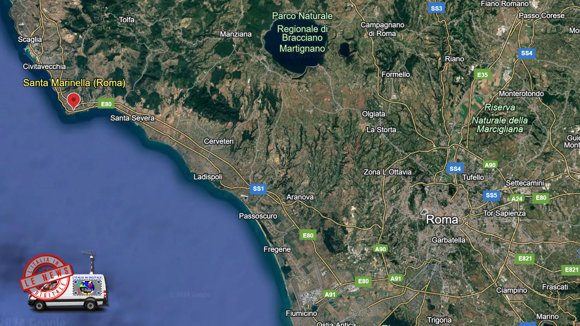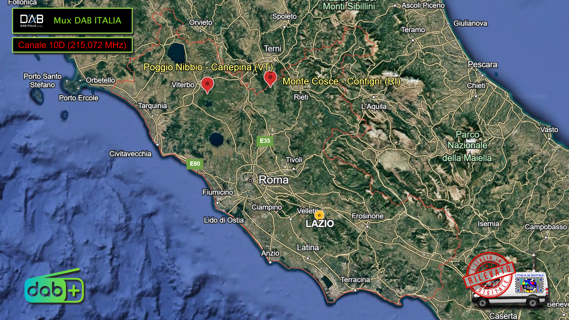dai ripetitori laziali di MONTE COSCE a Configni (RI) e POGGIO NIBBIO a Canepina (VT).