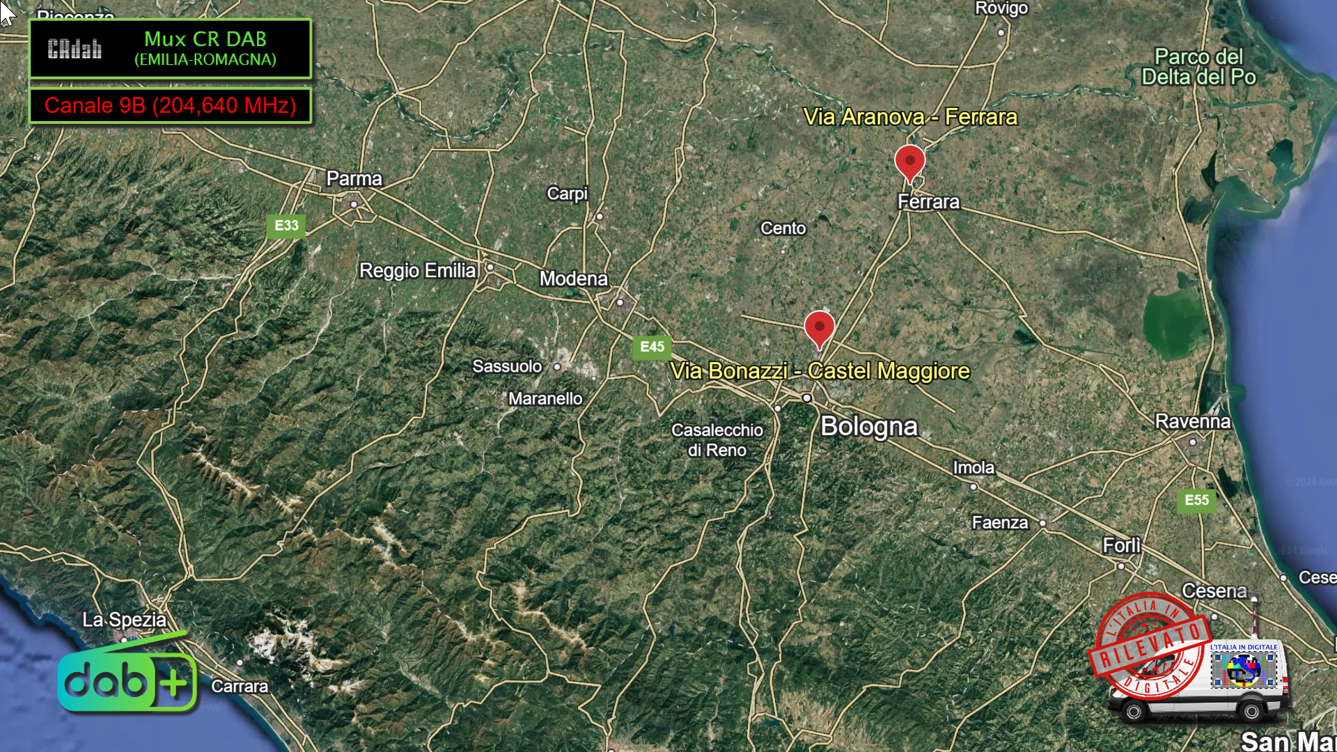 Ci spostiamo in Emilia-Romagna, dove segnaliamo la recente attivazione della versione locale del Mux CR DAB