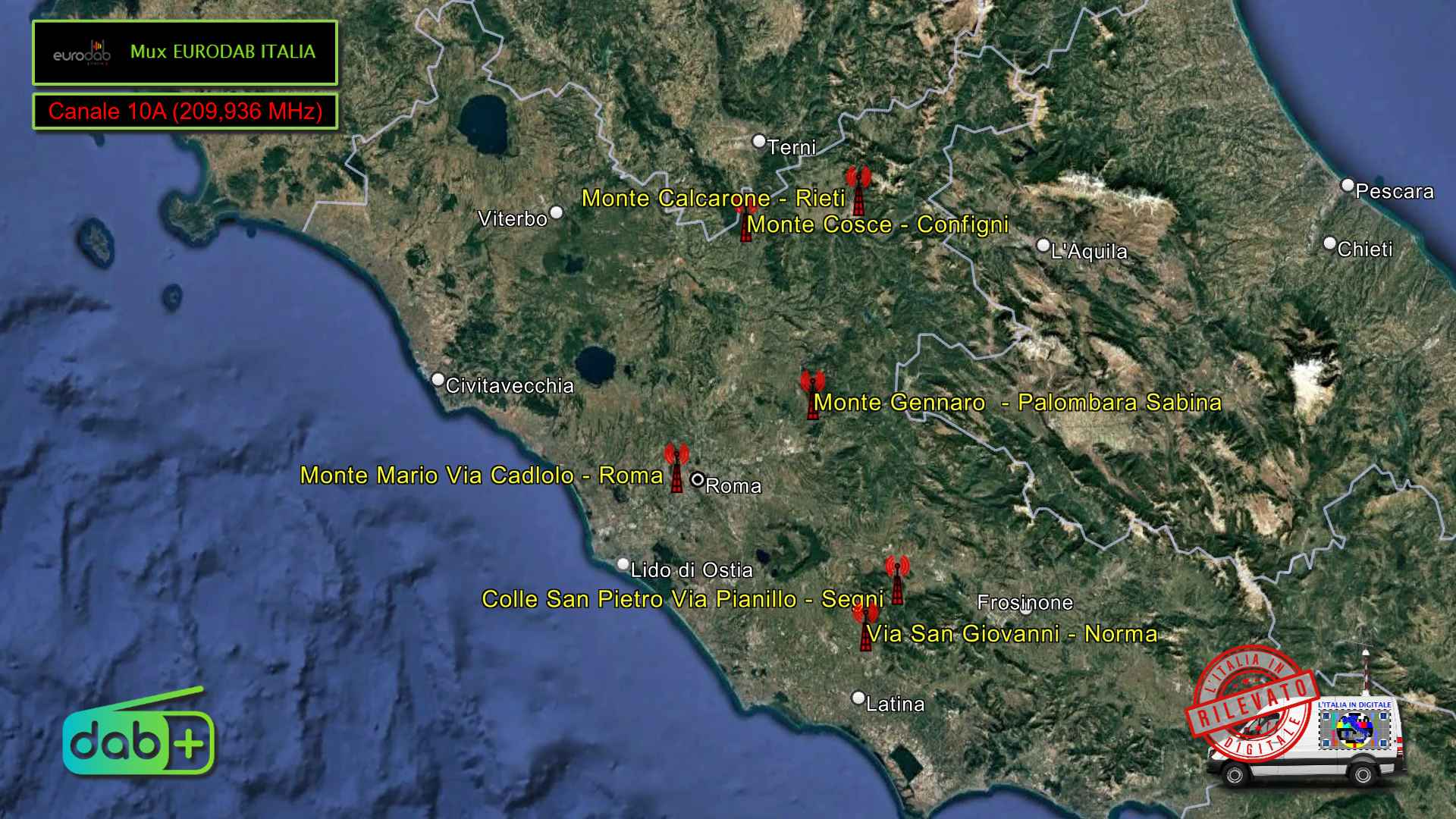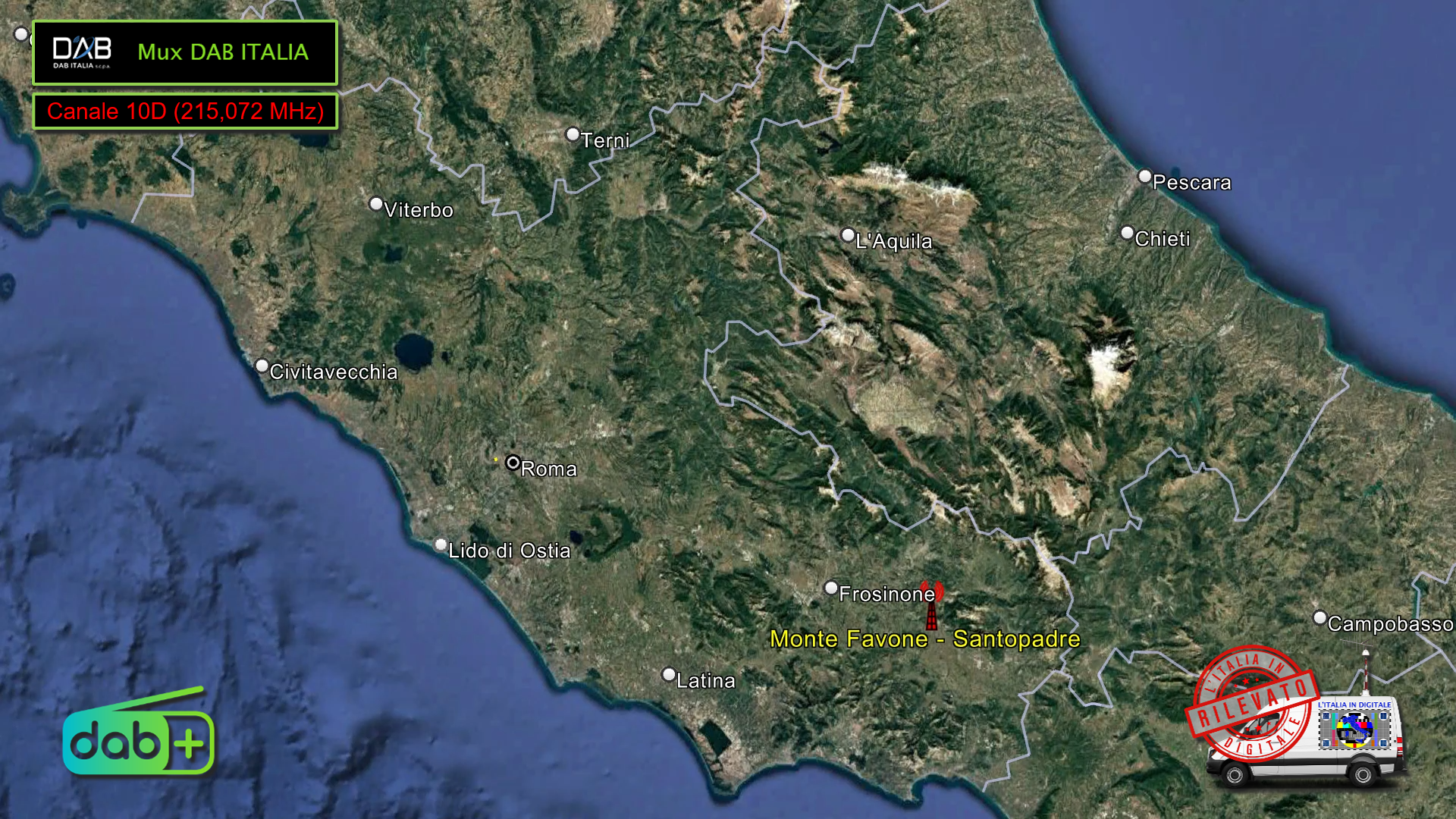 Il Mux DAB ITALIA, invece, ha sostituito definitivamente il blocco 12C con il Canale 10D dal ripetitore laziale di MONTE FAVONE a Santopadre (FR).