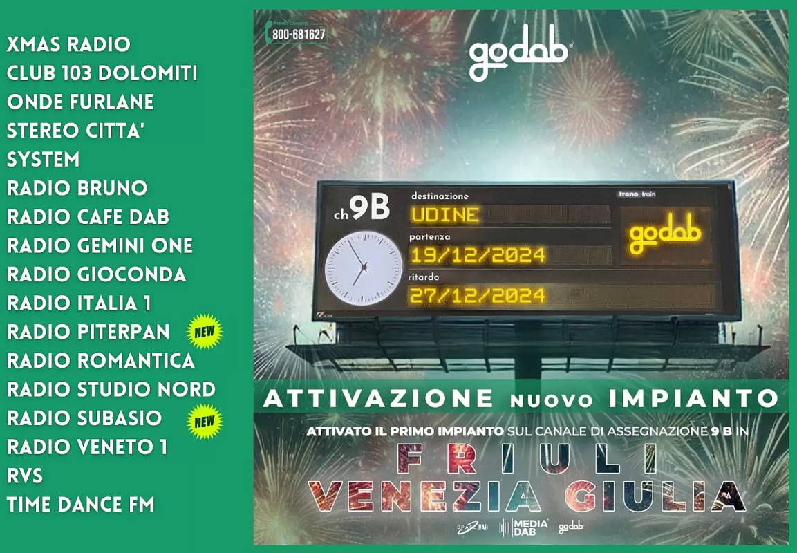 RADIO DAB - ATTIVATO IL MUX GO DAB (FRIULI-VENEZIA GIULIA)