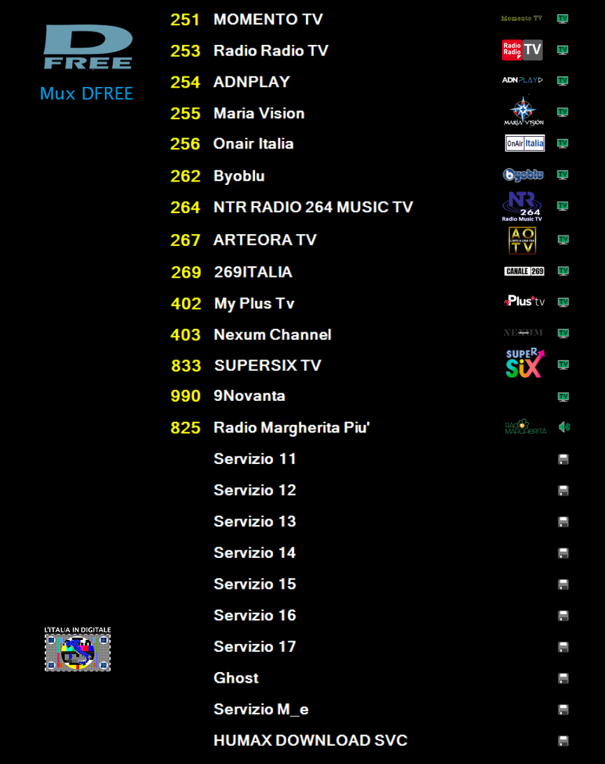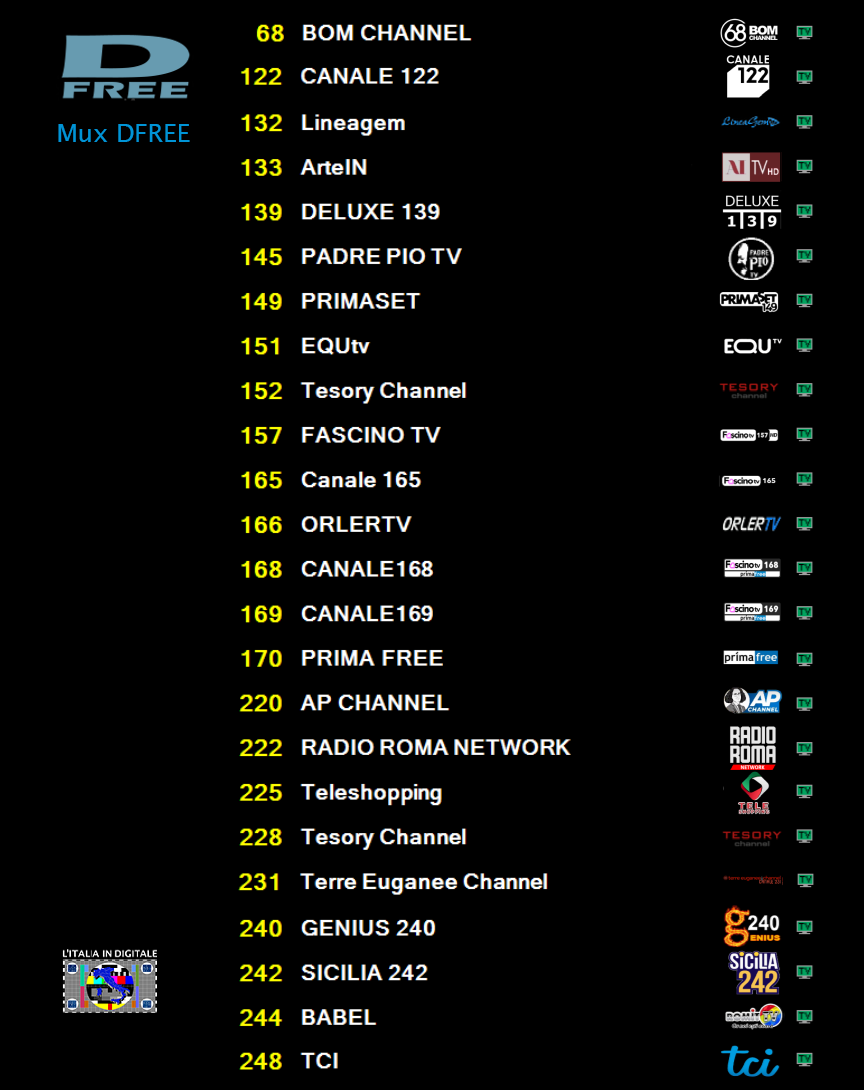 MUX DFREE: NUOVO LOGO PER CANALE 168 E CANALE 169.