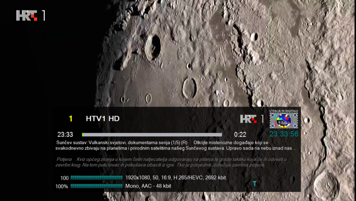 nel provider locale HRT Mux L1 (D044/D045/D046), trasmesso nella modalità video DVB-T2