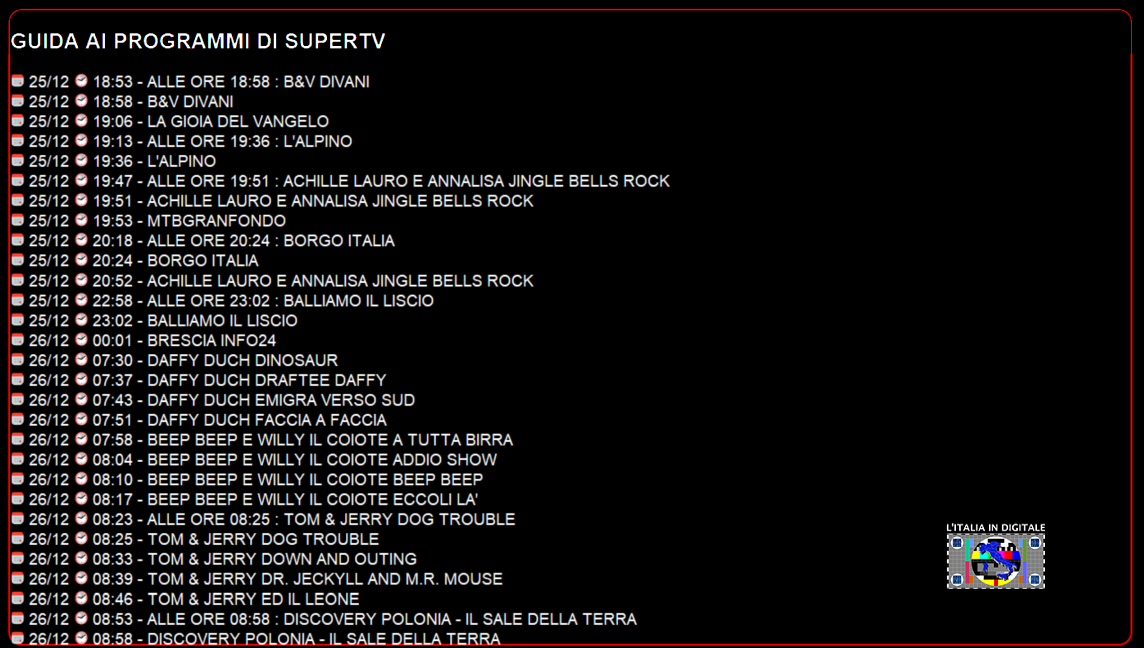 Inoltre è possibile rivedere i programmi di SUPER TV e consultare il palinsesto, con il tasto giallo si ascolta RADIO SUPER.