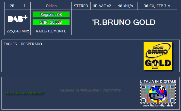 RADIO DAB - MUX RADIO DIGITALE PIEMONTE: RINOMINATO L' IDENTIFICATIVO DI RADIO BRUNO GOLD