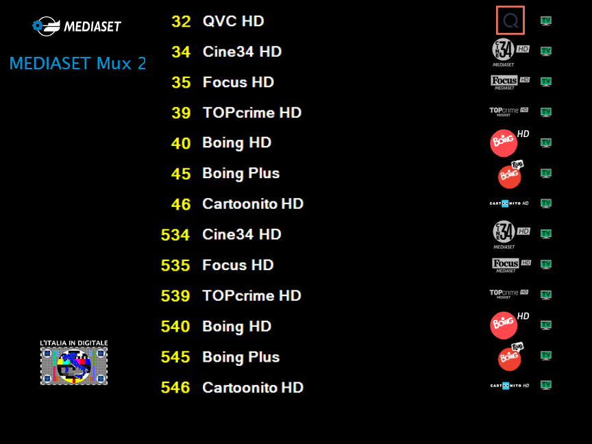Nel MEDIASET Mux 2 i canali dati eliminati sono dieci.