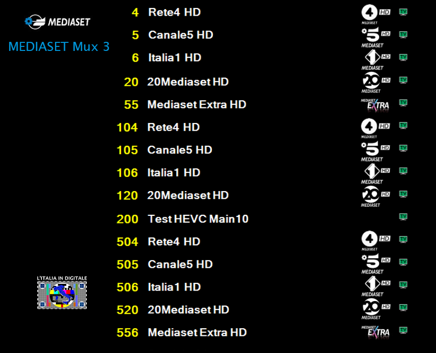 Nel MEDIASET Mux 3 i canali dati eliminati sono dieci.