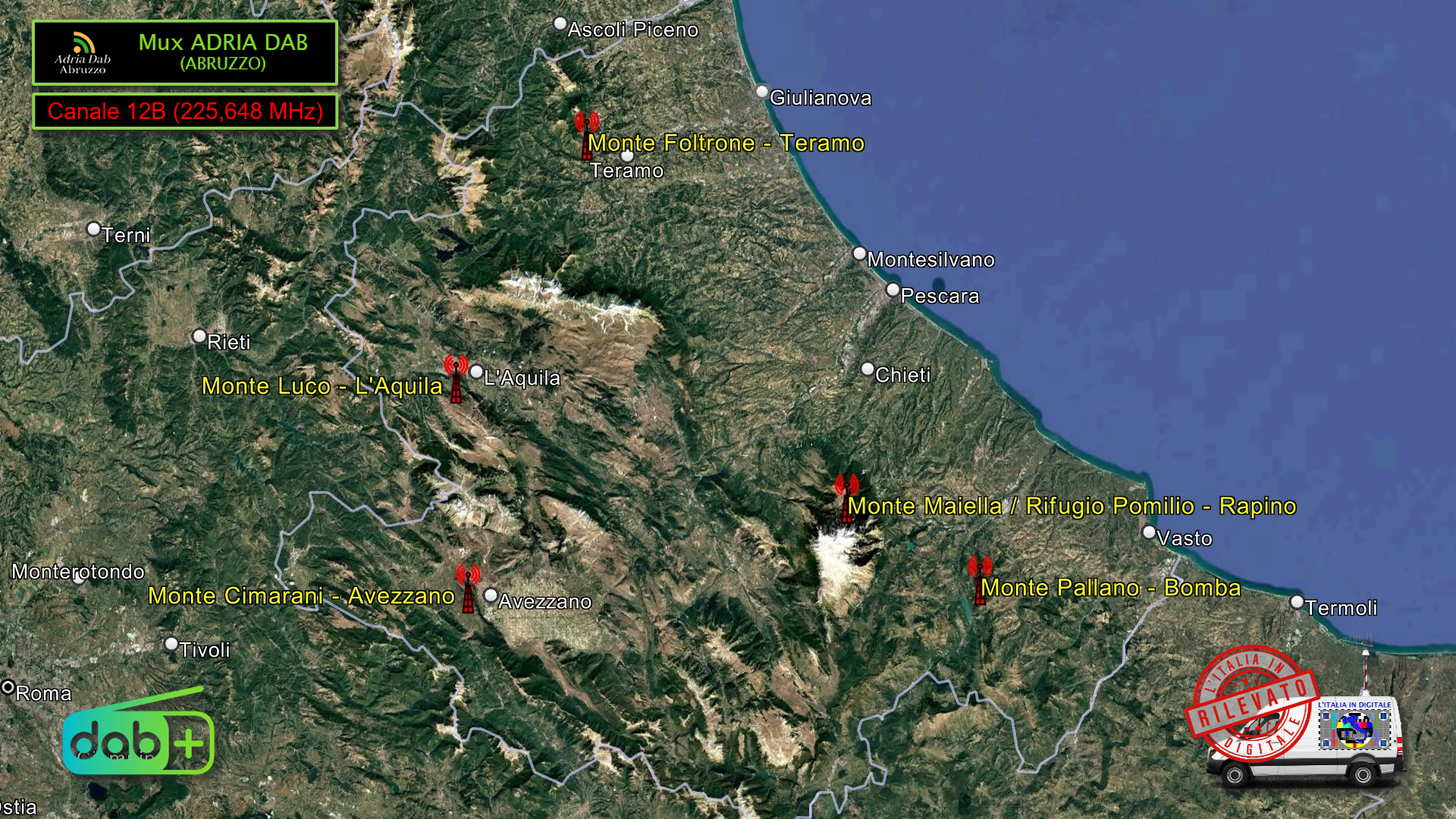 Rimaniamo nel centro Italia per segnalare che il Mux ADRIA DAB (ABRUZZO) è stato recentemente acceso,