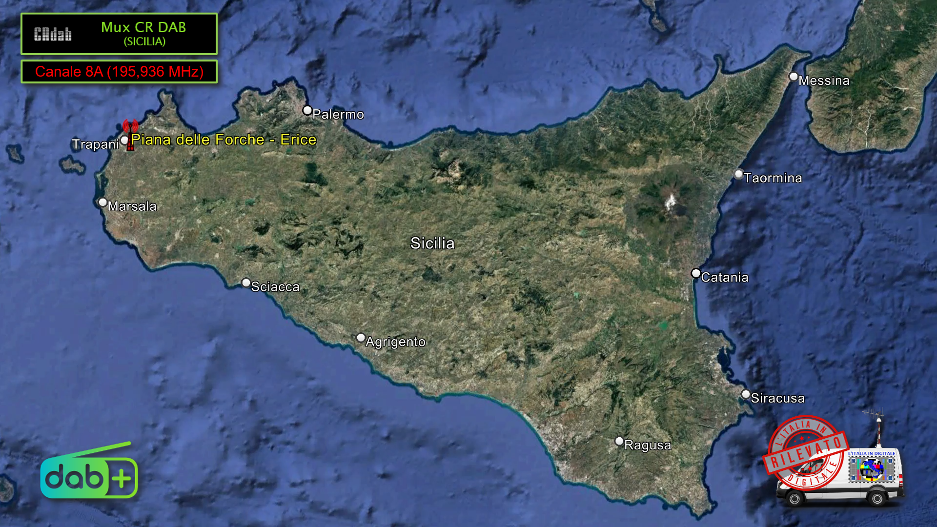 Ritorniamo in Sicilia, dove è stato acceso il Mux CR DAB sul blocco 8A dalla postazione di PIANA DELLE FORCHE ad Erice (TP).