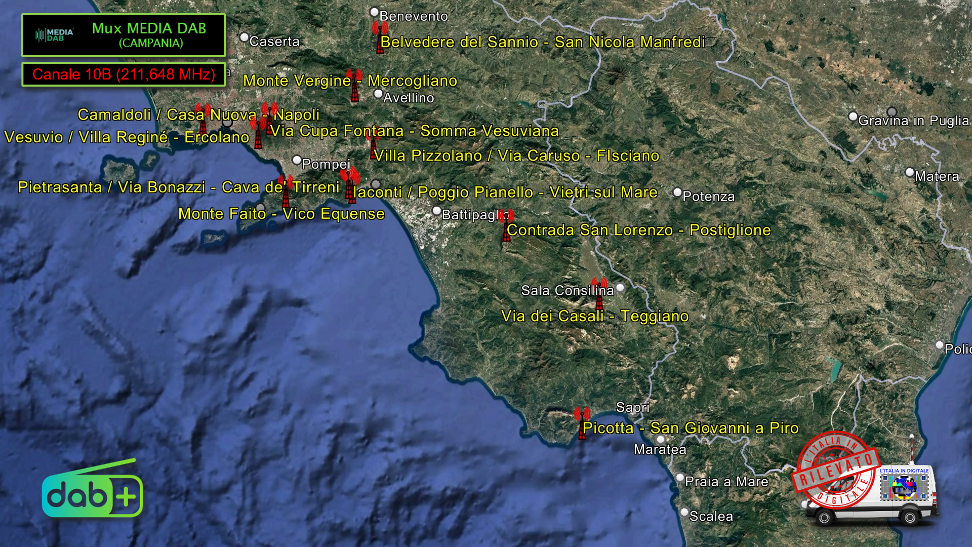 RADIO DAB - MUX MEDIA DAB (CAMPANIA): NUOVA ATTIVAZIONE IN PROVINCIA DI SALERNO