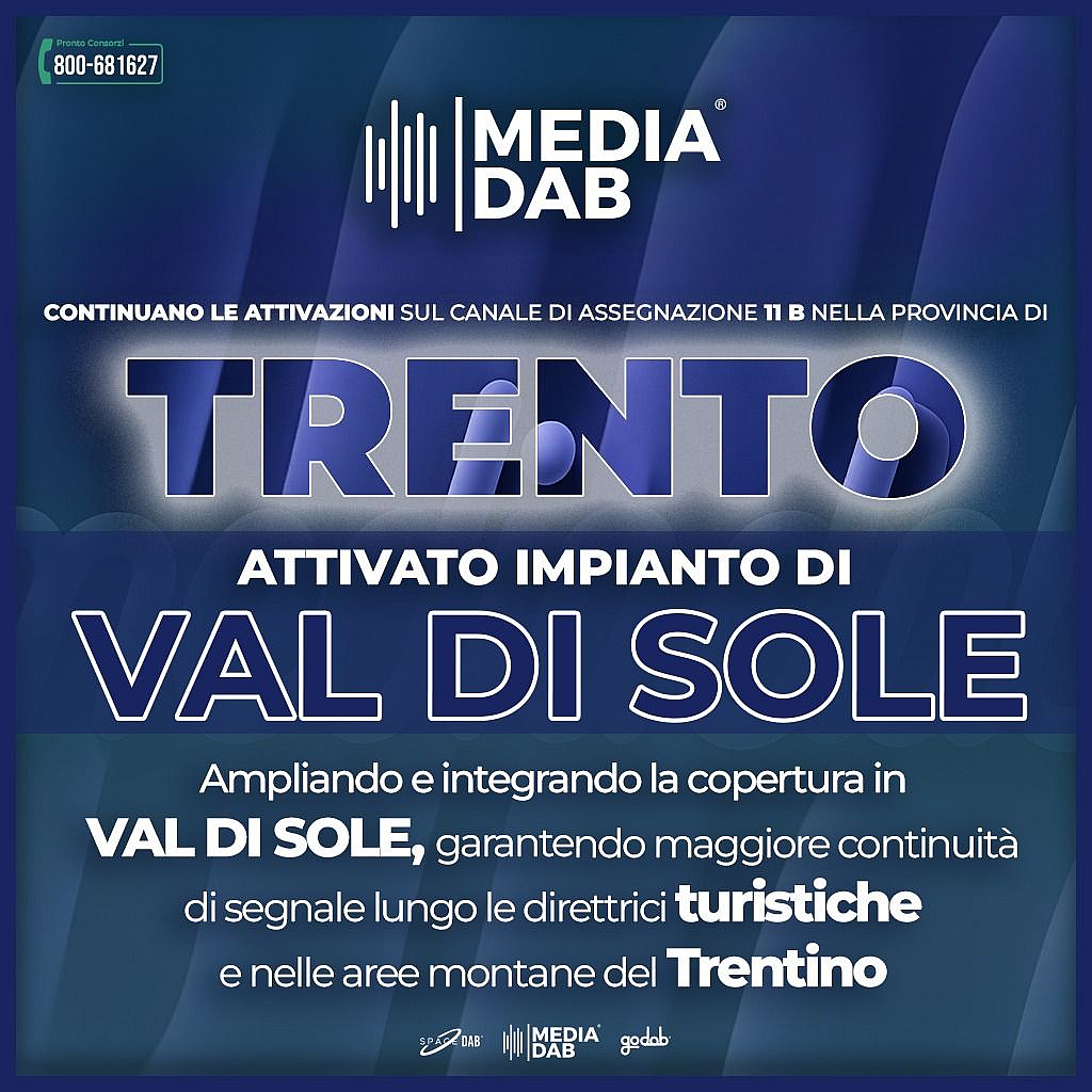 RADIO DAB: NUOVA ATTIVAZIONE PER IL MUX MEDIA DAB (TRENTINO-ALTO ADIGE)