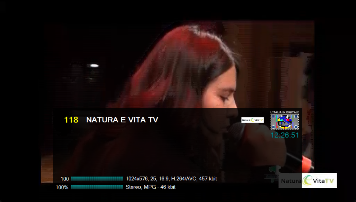 che durante la nostra rilevazione risultava a schermo nero, NATURA E VITA TV (LCN 118) e LORY TV (LCN 119),