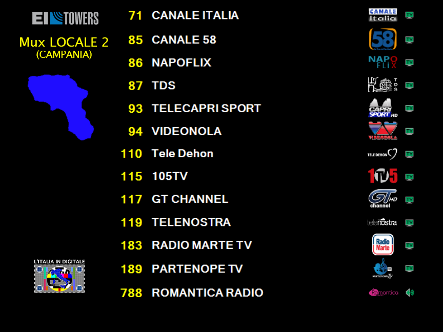 MUX LOCALE 2 (CAMPANIA): INSERITA ROMANTICA RADIO.