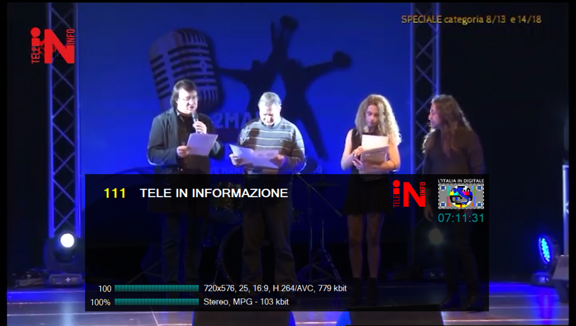 E’ stata inoltre inserita TELE IN INFORMAZIONE (LCN 111) anch’essa trasmessa in definizione standard MPEG-4 H.264.
