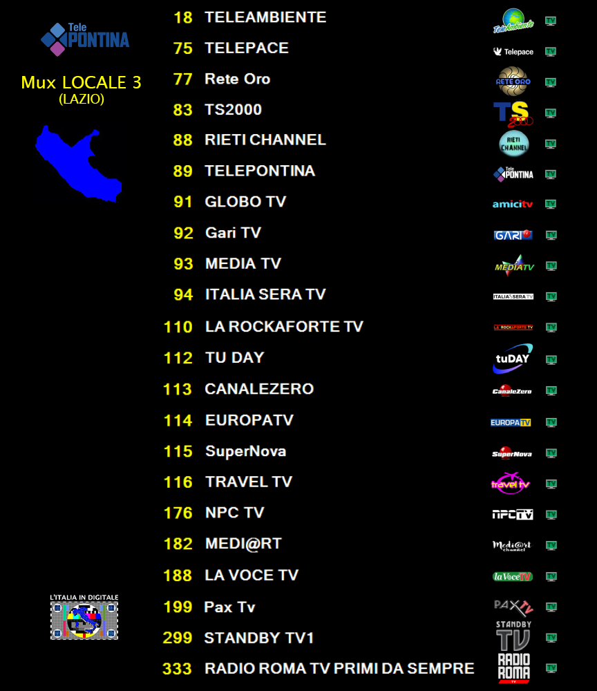 Ritorniamo nel centro Italia per aggiornare il Mux LOCALE 3 (LAZIO),