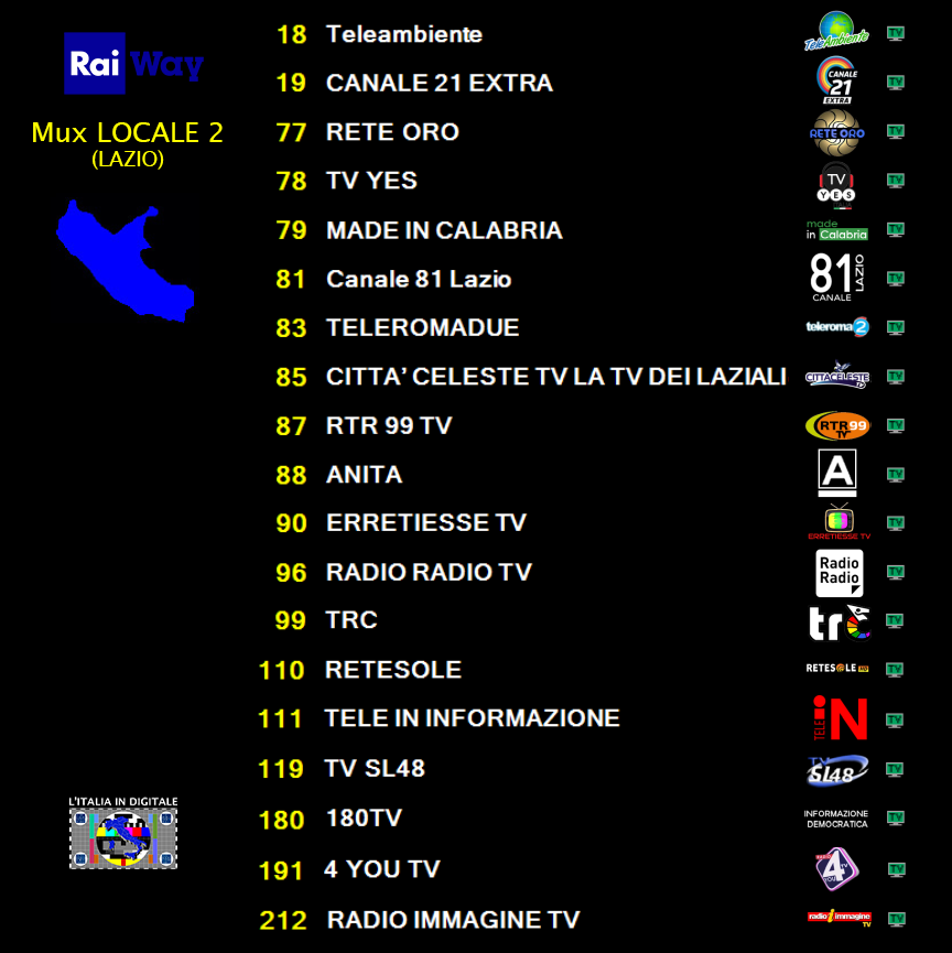 nel Mux LOCALE 2 è stata reinserita l’emittente MADE IN CALABRIA (LCN 79)