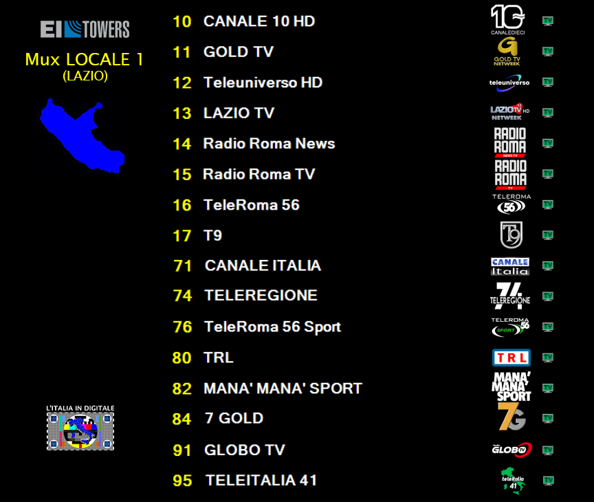 A distanza di una decina di giorni, un’ulteriore variazione ha interessato il Mux LOCALE 1 (LAZIO).