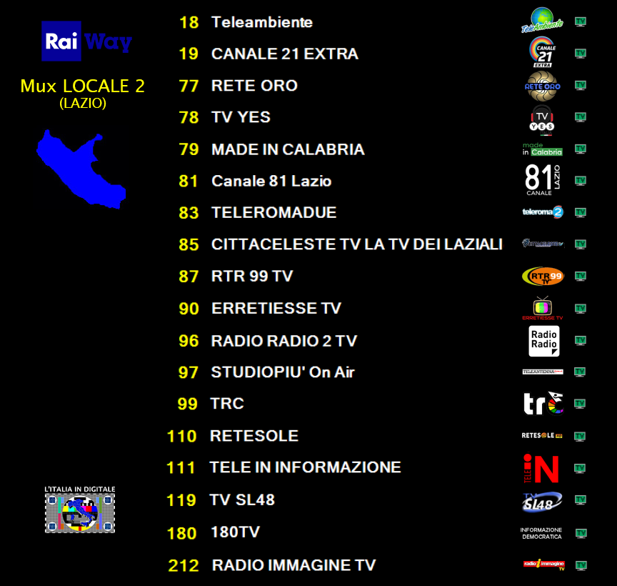 Ulteriori novità nel Mux LOCALE 2 (LAZIO).
