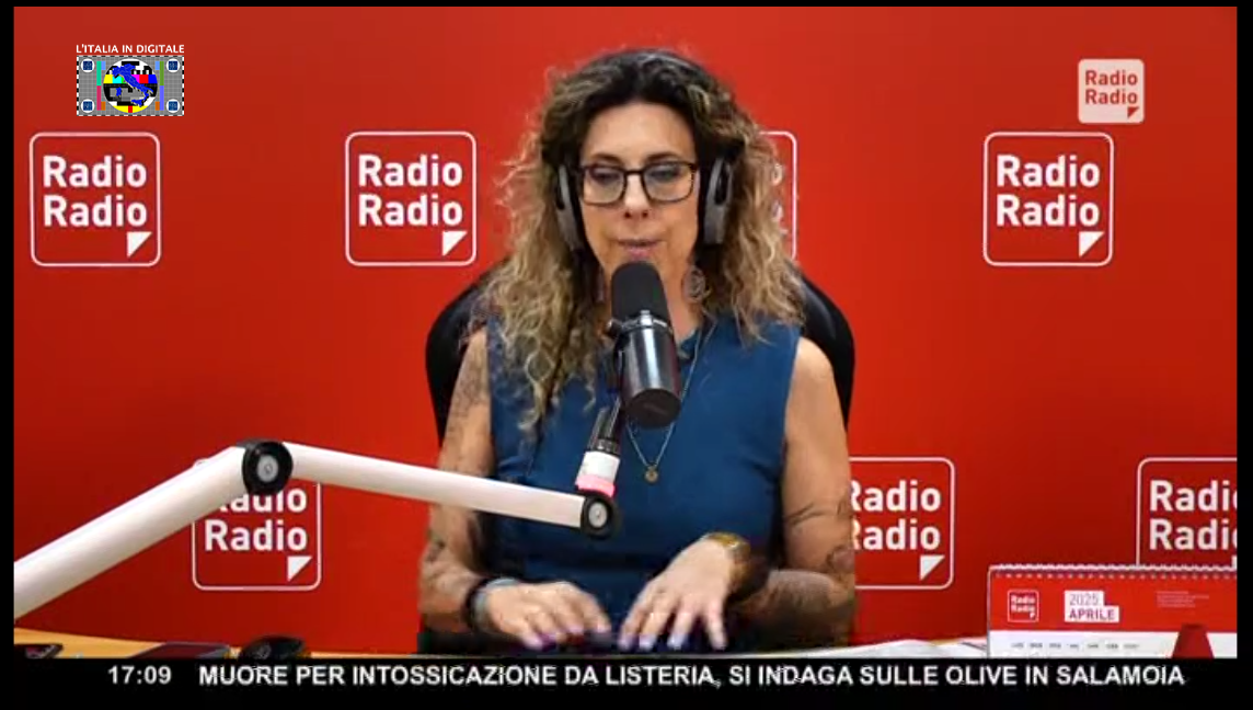 In alto a destra è sempre presente il logo di Radio Radio di colore bianco.