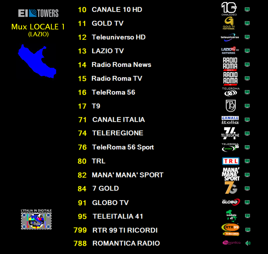 MUX LOCALE 1 (LAZIO): ELIMINATA ROMA SPORT 100% (TELE IN)
