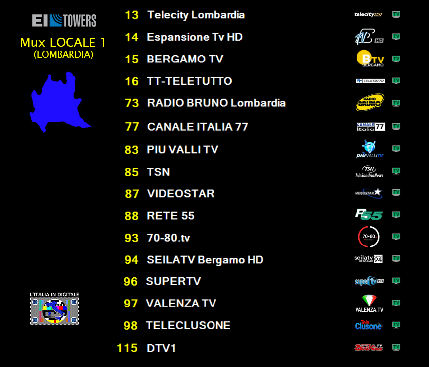MUX LOCALE 1 (LOMBARDIA): ELIMINATO ONE TV.