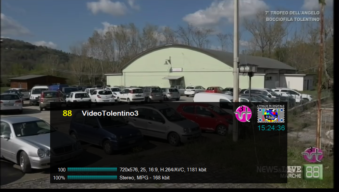 mentre sulla LCN 88 appare sempre la dicitura NEWS & LIVE MARCHE 88 sotto il logo di VideoTolentino3.