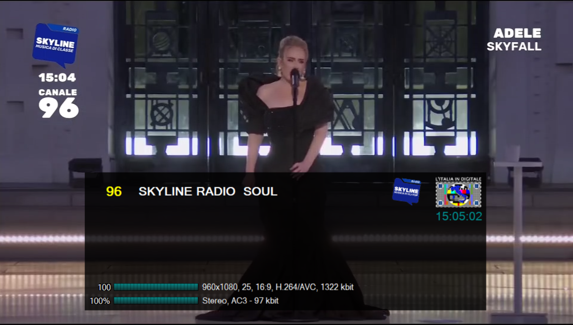 che trasmette sempre in H.264 HD con la risoluzione 960×1080 e con il logo di RADIO SKYLINE MUSICA DI CLASSE.