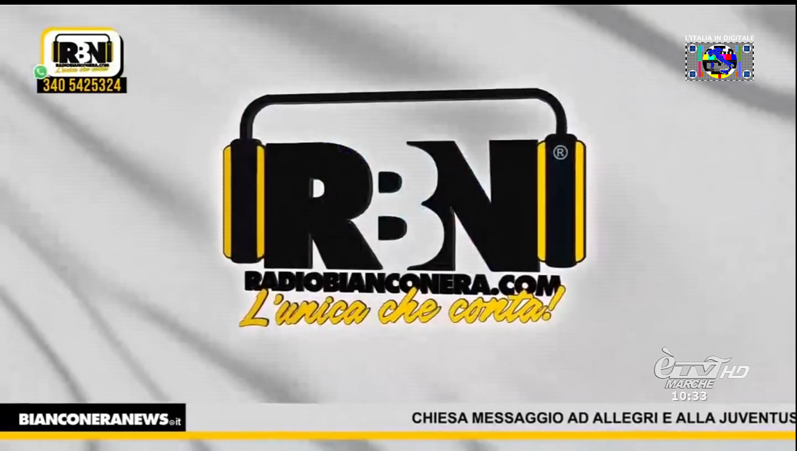 Inoltre in alcuni orari prosegue la ripetizione di RADIO BIANCONERA con entrambi i loghi in sovraimpressione.