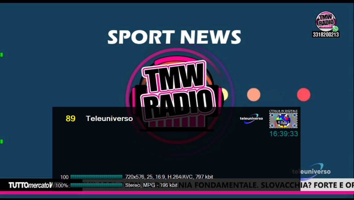 che in alcuni orari ripete la sportiva TMW RADIO con entrambi i loghi in sovraimpressione.