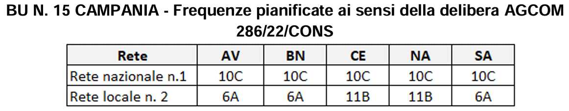 Le frequenze in questione sono intanto alcune di quelle del bacino d’utenza n. 12 (Lazio), per la precisione la rete nazionale n. 1