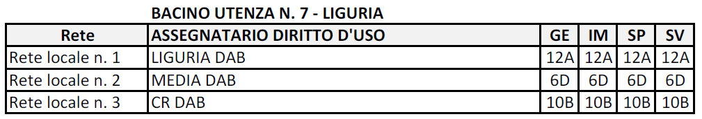 In Liguria situazione ideale già al 28 agosto, con tre reti regionali e tre consorzi interessati, uno per ciascuna rete, con conseguente assegnazione.