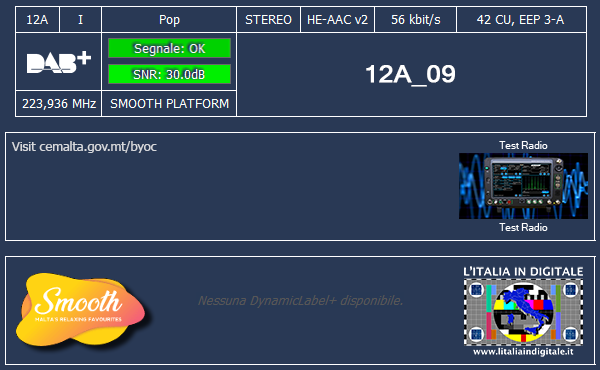 MALTA IN DIGITALE RADIO DAB - MUX SMOOTH PLATFORM: