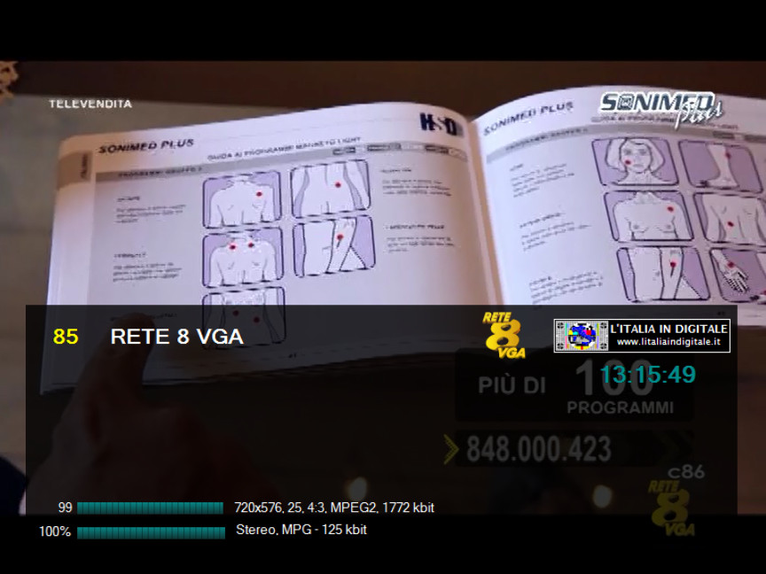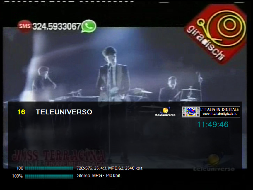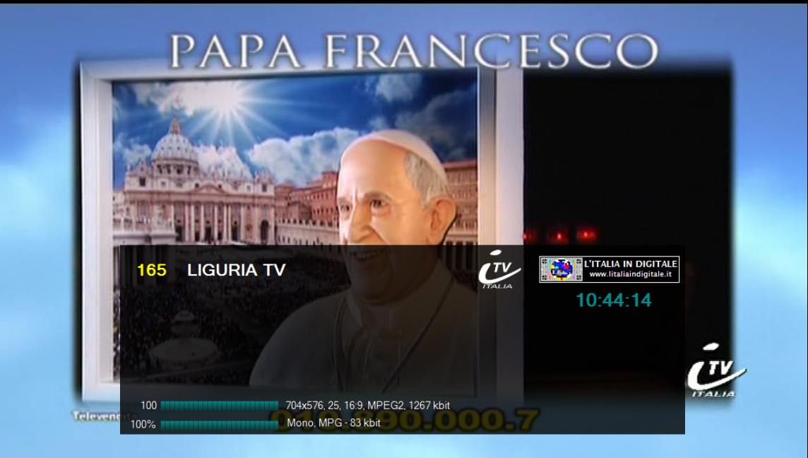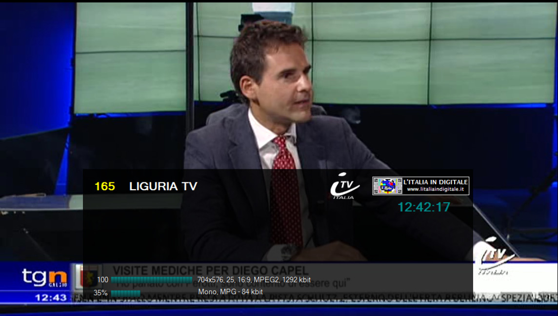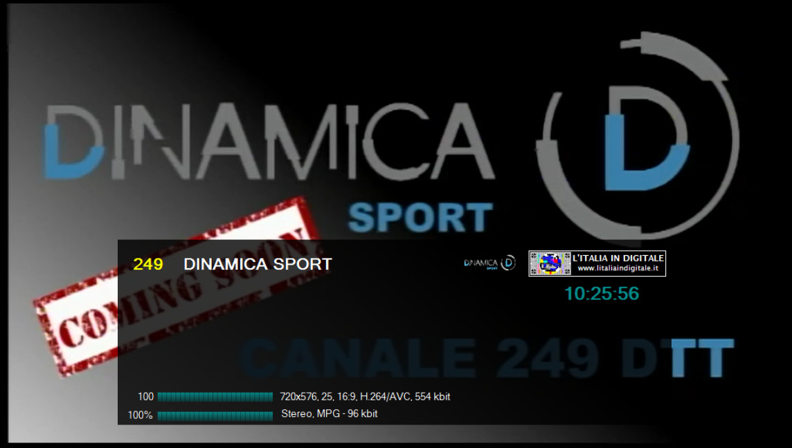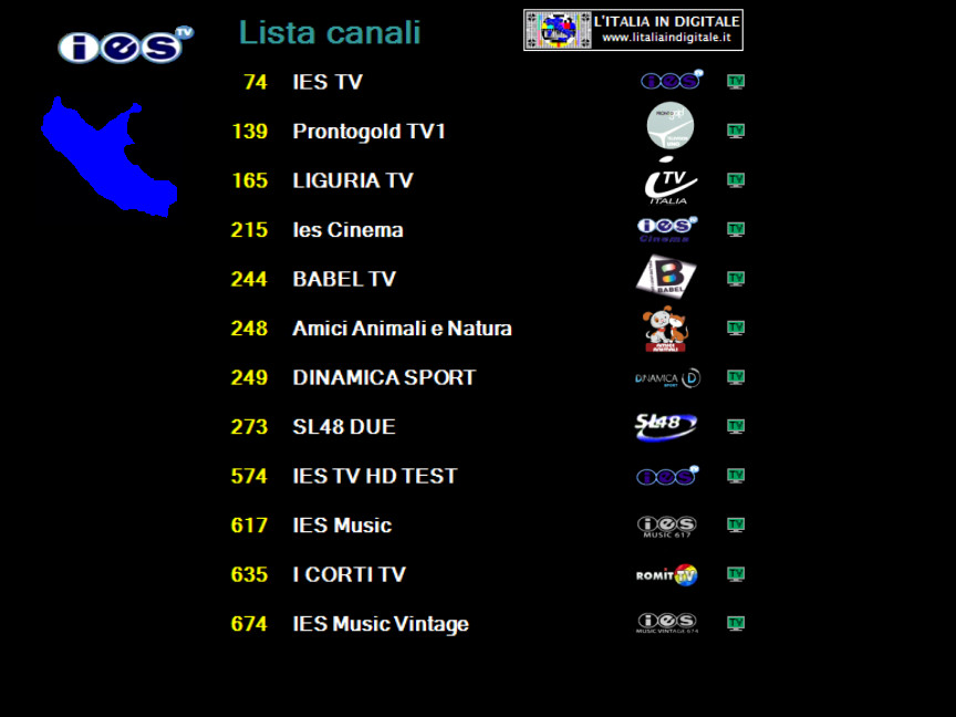 sui Mhz 90.000 di RADIO DONNA. Tale impianto è attivo dal sito di Contrada Montesecco - Punta Bora Tesino a Grottammare (AP) e, come potete vedere dalle immagini qui in basso, è anche presente l'indicazione rds (R.DONNA) e la sola portante priva di suono. Non sappiamo se si tratta di una radio locale che portava il nome dell'omonimo circuito nazionale (non più esistente) o altro, sta di fatto che in rete abbiamo trovato un sito che parla di una RADIO DONNA NETWORK con sede proprio a San Benedetto Del Tronto, con tanto di numero di telefono che a sua volta non risulta più in esercizio. Ci appelliamo ai nostri lettori della zona a cui chiediamo maggiori delucidazioni. Ore 11.15 - MUX IES TV: ARRIVANO LIGURIA TV (ITV ITALIA) E DINAMICA SPORT. UHF 53 Mux IES TV Novità nel mux IES TV dove da alcuni giorni sono arrivati due nuovi canali. ![]() Sulla LCN 165 arriva LIGURIA TV che trasmette la programmazione di ITV ITALIA, già presente nella stessa posizione del telecomando nel mux TELEROMA 56, pertanto sono in conflitto di numerazione. Sulla LCN 249 è stata inserita DINAMICA SPORT, in onda c'è un cartello fisso in MPEG-4 H264 standard definition con il logo di rete e la scritta COMING SOON CANALE 249 DTT, pertanto per essere visibile è necessario essere dotati di TV o decoder con sintonizzatore in alta definizione. Questa emittente dovrebbe iniziare la programmazione nel mese di settembre, ricordiamo che aveva già fatto la sua comparsa in questo multiplex nello scorso mese di dicembre, sempre con il cartello fisso, ma dopo alcuni mesi era stato eliminato senza che le trasmissioni fossero iniziate. ![]()