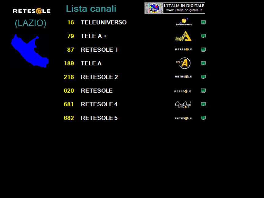 Ore 23.55 - MUX TELE IN: TUTTO L'EVANGELO SULLA LCN 245, ARRIVANO SPAZIO APERTO, IBC E SIMPLY CITY, RINOMINATA SIMPLY TV. VHF 10 - UHF 45 Mux TELE IN Alcune novità nel multiplex del provider TELE IN dove adesso si sintonizzano 18 canali televisivi e uno radiofonico. ![]() L'emittente religiosa tutto l'evangelo arriva sulla numerazione LCN nazionale 245 con il canale identificato Parole di Vita. Tutto l'evangelo continua ancora ad essere trasmesso sulla LCN 624 di SL 48 TRE, ma l'identificato è stato cambiato da SL 48 TRE a SPAZIO APERTO, in sovraimpressione in alto a destra è sempre presente il logo di rete di SL 48 TRE. ![]() ![]() Sulla LCN 685 il canale SL 48 GEO è stato rinominato con l'inedito identificativo IBC, mentre nella posizione LCN 687 l'identificato di SL 48 CITY è mutato in SIMPLY CITY. Entrambi continuano a trasmettere le trasmissioni di TeleRomaDue / Tele Tibur, unica programmazione con due loghi in sovraimpressione, in onda anche sulle LCN 89 (TeleRomaDue), 119 (Tele Tibur), e 622 (TeleRomaTre). ![]() ![]() Infine sulla LCN 687 l'identificativo del canale che già trasmetteva la programmazione musicale di SIMPLY TV è stato corretto da SL 48 R&N a SIMPLY TV. ![]() Abbiamo aggiornato la griglia dei canali e lo z@pping TV del mux TELE IN. ![]() Ore 21.25 - HRT D8 MUX D: NUOVO LOGO PER CMC. UHF 34 HRT D8 Mux D Procediamo ad aggiornare i multiplex della sezione CROAZIA IN DIGITALE, dove segnaliamo che nell' HRT D8 Mux D, rispetto alla nostra precedente rilevazione, il canale musicale CMC ha adottato un nuovo logo di rete ed un restilyng grafico. A sinistra il nuovo logo, a destra quello precedentemente usato. ![]() ![]() Gli altri 4 canali del multiplex, MrezaST, RTL KOCKIKA, Sportska televizija e TV JADRAN, non hanno subito modifiche. Ricordiamo che tutti i canali televisivi croati sono privi di numerazione LCN. ![]() Abbiamo aggiornato la griglia dei canali e lo z@pping TV dell' HRT D8 Mux D. ![]() Ore 18.40 - MUX VIDEO REGIONE: ARRIVA LA 8, ELIMINATA TELECAMPIONE. UHF 34 Mux VIDEO REGIONE Da alcuni giorni è stata inserita nel mux di VIDEO REGIONE l'emittente La 8 con la numerazione LCN 151. Inoltre segnaliamo che, rispetto alla nostra ultima rilevazione, è stato eliminato dalla LCN 75 il canale TELECAMPIONE che trasmetteva AIR ITALIA, presente sempre in questo multiplex con la LCN 138. Abbiamo aggiornato la griglia dei canali e lo z@pping TV del mux VIDEO REGIONE. ![]() ![]() Ore 12.30 - MUX RETESOLE (LAZIO): RITORNA TELEUNIVERSO. UHF 21-24-27 Mux RETESOLE (LAZIO) Da alcuni giorni, dopo l'assenza di poco meno di un mese, è tornata nel mux RETESOLE (LAZIO) l'emittente TELEUNIVERSO con la numerazione LCN 16.