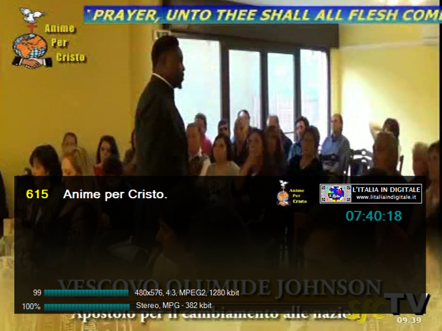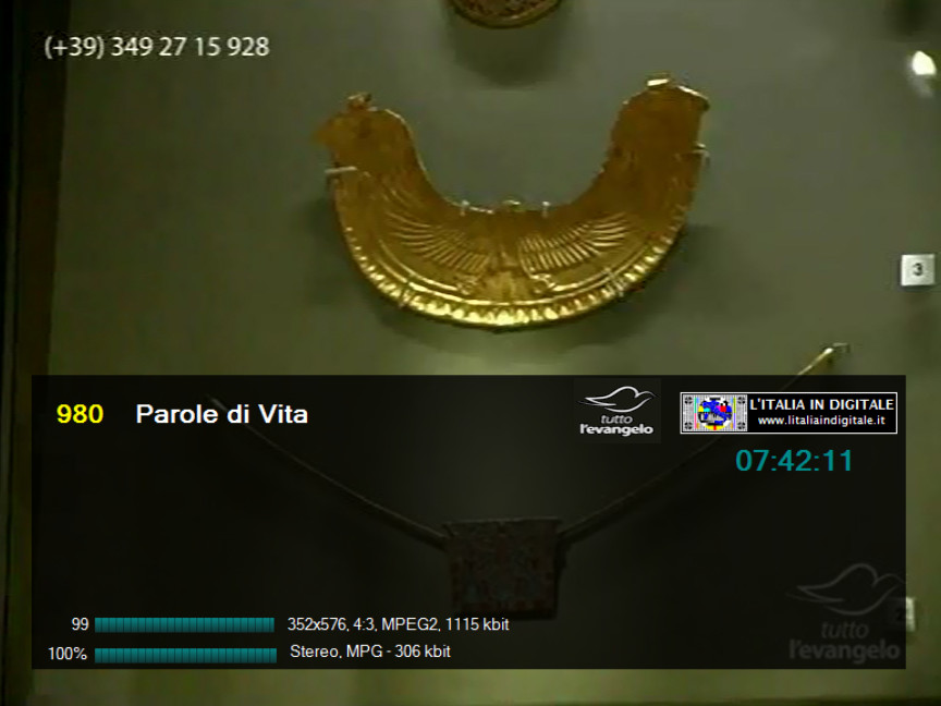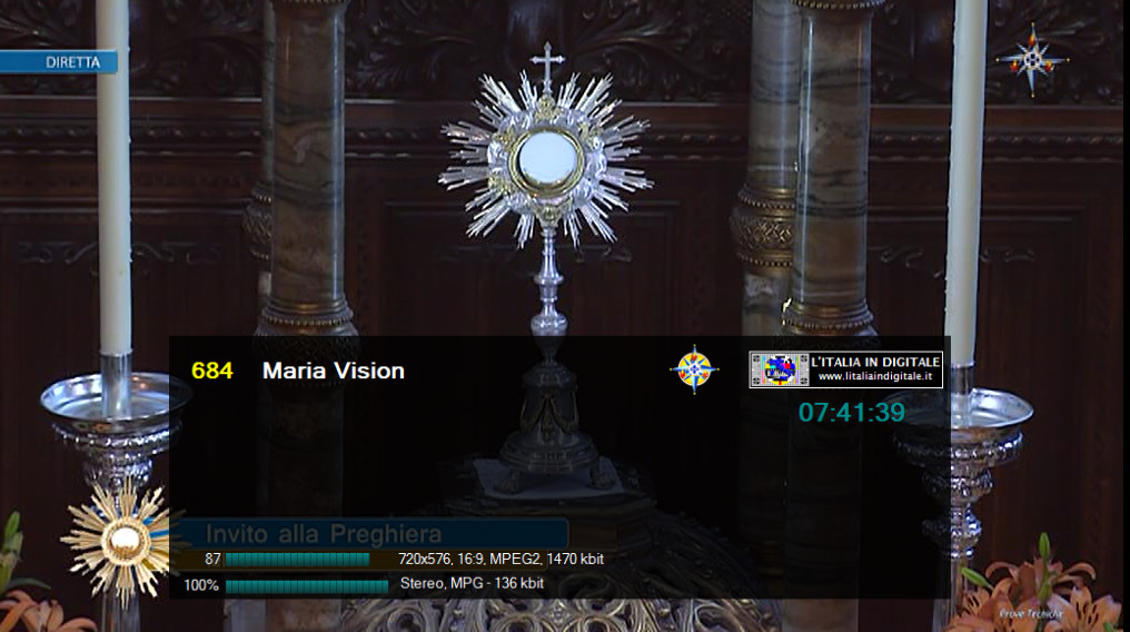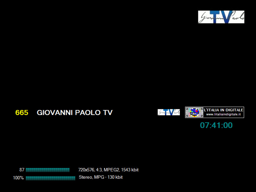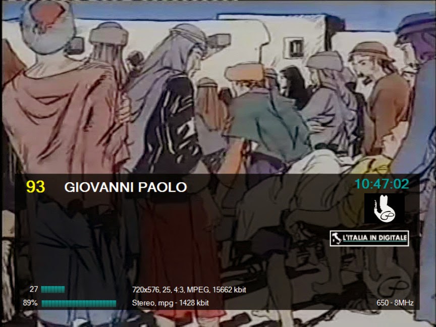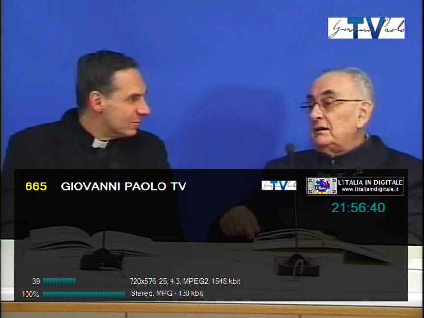 Ore 23.30 - MUX DI.TV (PARMA): AGGIORNATA LA GRIGLIA DEI CANALI E LO Z@PPING TV. UHF 43 Mux DI.TV (PARMA) Nella sezione EMILIA-ROMAGNA IN DIGITALE e più nel dettaglio nella lista delle TV A PARMA aggiorniamo la composizione dei canali radio-TV veicolati dal mux DI.TV (PARMA). Rispetto alla nostra precedente rilevazione (datata giugno 2013) è stata eliminata Telereggio (LCN 14) mentre GIOVANNI PAOLO TV passa dalla LCN 93 al numero 665 e adotta un nuovo logo di stazione (mentre scattavamo le immagini il canale era a schermo nero). A sinistra il nuovo logo di GIOVANNI PAOLO TV, a destra quello precedentemente usato. ![]() ![]() Sulla LCN 170 troviamo Ok Italia, mentre Anime per Cristo passa dalla LCN 613 alla 615 e proprio sulla LCN 613 è ora posizionata PARMA CHANNEL. ![]() ![]() ![]() Sulla LCN 684 rileviamo l'inserimento di Maria Vision, inoltre è stato modificato l'identificativo di Parole di Vita (LCN 980) che ora trasmette la seconda emittente del gruppo tutto l'evangelo, precedentemente era sintonizzabile come PDV. Eliminata Medjugorie Italia TV che era priva di numerazione automatica, mentre è stata aggiunta Radio Sabbia Riccione (senza numerazione LCN). Tratto da: http://www.tmnews.it/web/sezioni/video/a-parma-la-parrocchia-va-sul-satellite ![]() ![]() ![]() Abbiamo aggiornato la griglia dei canali e lo z@pping TV del mux DI.TV (PARMA) e la lista delle TV A PARMA. ![]() 4 GIUGNO 2013 - Martedì Ore 15.15 - A PARMA LA PARROCCHIA E' IN TV. UHF 43 Mux DI.TV (PARMA) Messa e appuntamenti liturgici in onda su "Giovanni Paolo TV". Un vecchio furgone con la parabola sul tetto. E la soluzione ideale per alimentare il valore della condivisione. Condivisione attraverso la trasmissione Tv in simultanea dei momenti più significativi della vita di una diocesi, come la Messa e altri appuntamenti liturgici. Succede a Parma sulle frequenze di Giovanni Paolo Tv, che trasmette sul canale 93 del digitale terrestre in città e provincia. Ce ne parla Don Francesco Rossolini:"Siamo riusciti a realizzare il nostro sogno: la regia mobile che ci consentiva di registrare tanti eventi, finalmente ci consente di mandarli direttamente nelle case di tutti i cittadini di Parma".Condivisione significa anche lavorare assieme per imparare a realizzare le trasmissioni. Qualcuno tra i volontari di Giovanni Paolo Tv si presta alla causa per il gusto di partecipare. Altri, invece, coltivano la speranza di inventarsi un lavoro, sfruttando l'opportunità di fare le dirette tv via Satellite a basso costo e con semplicità tecnica, offerta dal servizio NewsSpotter di Eutelsat. 20 MAGGIO 2013 - Lunedì Ore 11.40 - MUX DI.TV (PARMA): REALIZZATA LA GRIGLIA DEI CANALI E LO Z@PPING TV. UHF 43 Mux DI.TV (PARMA) Implementiamo la lista delle emittenti tv che si ricevono a Parma e a Fidenza (PR) inserendo la composizione e i dettagli tecnici del mux DI.TV (PARMA). Sono sintonizzabili un totale di 11 TV e una radio; segnaliamo che sull' LCN 93 è presente il canale GIOVANNI PAOLO, mentre sull' LCN 682 è presente DI.TV CAFFE 24 (rispetto agli altri mux in cui questo canale è presente, in epg c'è una F di troppo). Mentre effettuavamo la rilevazione DI TV Space TV (LCN 684) era a schermo nero. Consulta l'elenco dei canali e lo z@pping TV aggiornato del mux DI.TV (PARMA). |