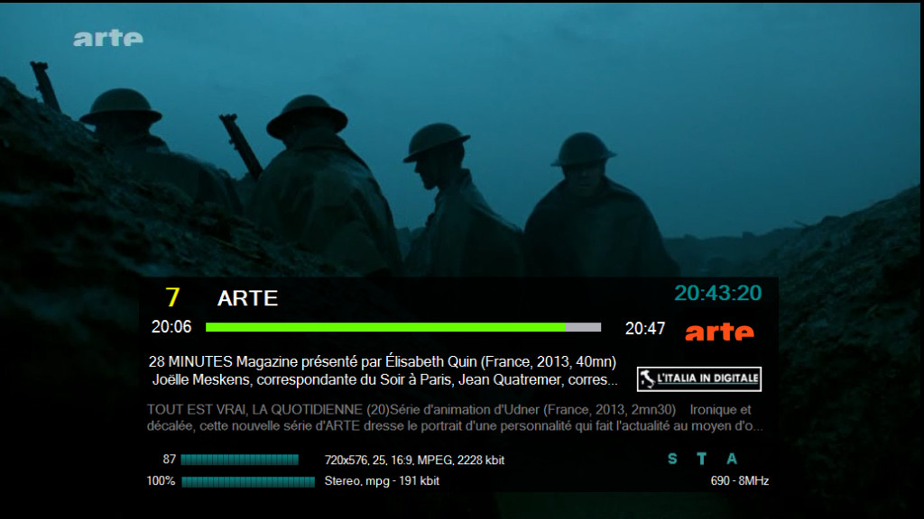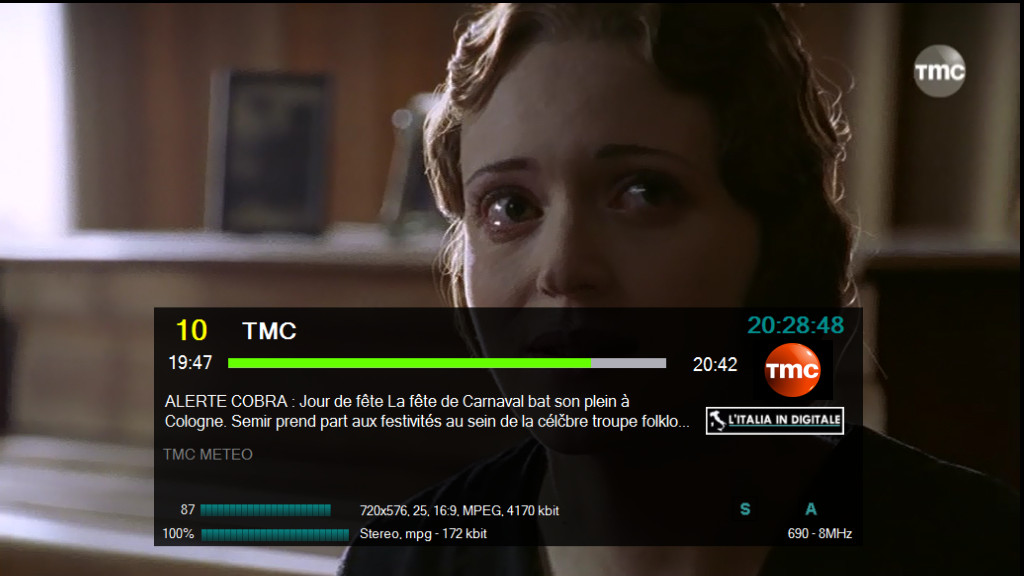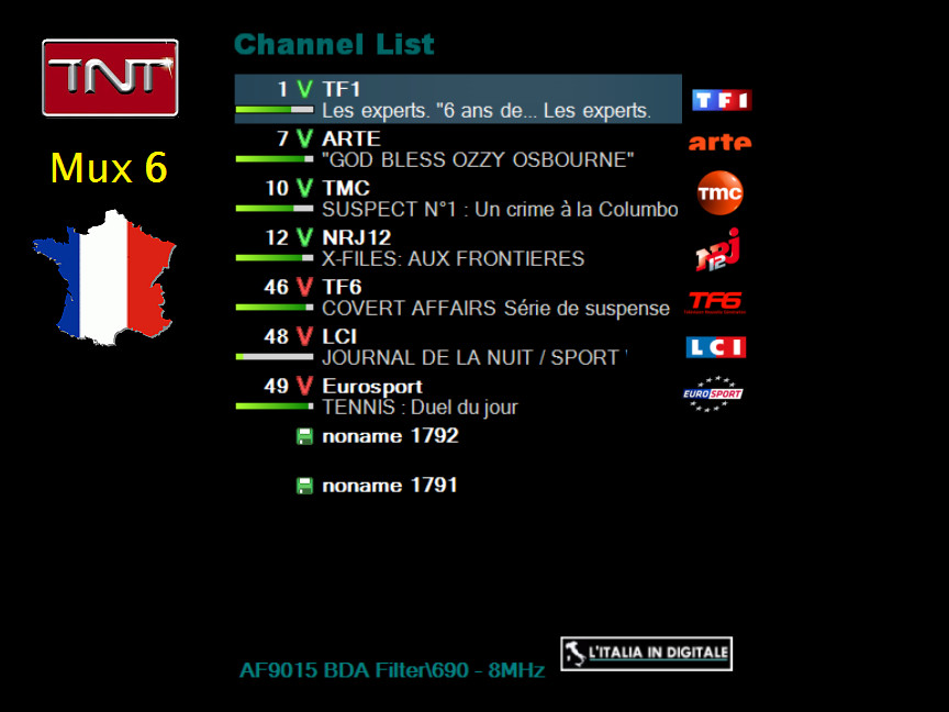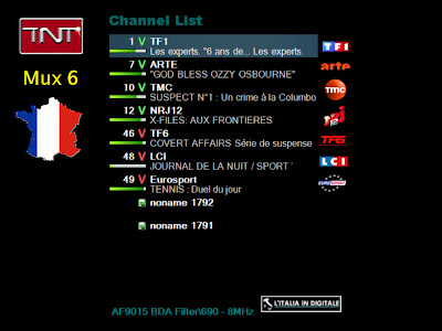 _________________________________________________________________________________________________ Le NEWS del mux TNT R6 del 2013 13 LUGLIO 2013 - Sabato Ore 19.30 - SPECIALE FRANCIA IN DIGITALE (ULTIMA PUNTATA): I CANALI DEL MUX TNT 6 CON TELEMONTECARLO. Mux TNT 6 Settima ed ultima puntata del nostro reportage dalla FRANCIA, oggi completiamo infatti la composizione del mux TNT 6 che trasporta 9 canali, di cui 4 TV free, 2 TV pay e 2 canali dati. Mux TNT 6 1 - TF1 TF1 è un canale televisivo generalista privato francese. È il primo canale televisivo francese per ascolti. La proprietà è del francese Bouygues, proprietario fra l'altro di Eurosport. Trasmette solo due notiziari al giorno, anch'essi i più seguiti in Francia. TF1 (nota in passato come Télévision Française 1) è la più vecchia televisione generalista francese che nacque il 13 febbraio 1932 come Radio PTT-Vision, per poi passare a TF1 dal 1975. Nel 1932 nacque Radio PTT-Vision che trasmetteva immagini e suoni a livello sperimentale, nel 1939 cambiò denominazione in Radiodiffusion Nationale Television. Nel 1940 la Francia venne invasa dai nazisti, che si appropriarono di questa stazione e la chiamarono Fernsehen Paris; chiuse le trasmissioni nel 1944, dopo la liberazione del paese. Nel 1946 riprese le trasmissioni come Television française de la R.D.F. e trasmetteva dodici ore alla settimana. Il 4 febbraio 1946 iniziarono ufficialmente le trasmissioni televisive, e il canale divenne R.T.F., il 29 giugno venne fatto il primo telegiornale. Nel 1963 nacque la seconda televisione pubblica francese, perciò il canale diventò Première chaîne. Nel 1975 l'ORTF fu sciolto da Jacques Chirac, e i canali pubblici francesi diventano autonomi tra loro e cambiano nome, il primo diventa TF1. Nel 1987 Jacques Chirac, allora primo ministro, ordina la privatizzazione di un canale per liberalizzare il mercato; non potendo privatizzare FR3 perché regionalizzata, sembrava orientato a vendere Antenne 2, ma era la tv più vista, e la scelta ricadde su TF1, venduta nel 1987. Dal 1991 è la rete tv più seguita in Francia, con uno share medio del 25%. Nel 2008 venne creata la versione in alta definizione di TF1 (TF1 HD). ARTE (LCN 7) www.arte.tv/frArte (acronimo di Association Relative à la Télévision Européenne, Associazione Relativa alla Televisione Europea) è un canale culturale franco-tedesco a vocazione europea di servizio pubblico, nato nel 1992 da un trattato fra lo Stato francese ed i Länder tedeschi. Ha succeduto La Sept (Société d'édition de programmes de télévision, Società di edizione di programmi di televisione) lanciata nel maggio 1989. Si tratta di un Gruppo Europeo di Interesse Economico (GEIE) i cui due membri sono in parità: Arte France (France 3, Stato francese, Radio France e INA) e Arte Deutschland (ARD e ZDF). Le trasmissioni di arte sono iniziate nel maggio 1992 e in seguito alla fine delle trasmissioni di La Cinq (l'emittente di Silvio Berlusconi), il Conseil Supérieur de l'Audiovisuel (CSA) ha attribuito ad Arte, su domanda del governo francese, le frequenze analogiche lasciate vacanti sul quinto canale terrestre nazionale francese. A partire dal 28 settembre 1992, il canale culturale è stato trasmesso su questa rete dalle 19:00 all'1:00, fascia poi estesa fino alle 3:00. Arte è associata ad altri canali pubblici europei: RTBF in Belgio, SRG SSR in Svizzera, TVE in Spagna, TVP in Polonia, ORF in Austria, YLE in Finlandia, NPS nei Paesi Bassi, BBC in Gran Bretagna e SVT in Svezia. Arte è diffusa simultaneamente in diverse lingue in tutta Europa dalla sua sede di Strasburgo. TMC (LCN 10) www.tmc.tv Télé Monte Carlo, nota anche con l'acronimo TMC, è la televisione nazionale del Principato di Monaco. Pochi sanno che TMC è il più vecchio canale televisivo privato d'Europa, nato nel 1954 e inaugurato dal Principe Ranieri III di Monaco. Come molti altri canali televisivi europei, la sua prima importante trasmissione fu legata alla famiglia Reale della nazione, in questo caso il matrimonio del Principe Ranieri III con Grace Kelly. Nel 1974 comincia a diffondere i suoi programmi in italiano ma qui lo scrittore Lucarelli direbbe: "Questa è un'altra storia". Negli anni '80 come risultato di un accordo tra Ranieri III e il presidente francese Francois Mitterrand, è in grado di trasmettere fino a Montpellier, triplicando la sua copertura (3 milioni di potenziali spettatori). Tra il 1988 ed il 1993 la sua programmazione viene ridotta a poche ore, mentre durante il resto della giornata vengono diffusi i programmi dei canali M6 (1988-1989) e MCM (1989-1993). La copertura aumente, diventando disponibile ai telespettatori francesi anche via satellite e via cavo. A partire dal 1993 il canale viene rilanciato torna ad una programmazione giornaliera. Successivamente, dal 2001, il canale assume un nuovo formato che ne riduce la connotazione di rete monegasca. Nel 2005 diviene disponibile attraverso il digitale terrestre su tutto il territorio francese e ad oggi risulta il sesto canale francese con il maggiore ascolto in Francia. Télé Monte Carlo ha un programmazione generalista. Il palinsesto negli ultimi anni si è concentrato su telefilm e serie televisive, mentre rispetto al passato è diminuito il numero di programmi autoprodotti. Tra essi si annoverano comunque notiziari, programmi di cucina e salotti d'intrattenimento, tra i quali: SUD, una trasmissione culturale che si concentra sul Principato di Monaco e sul sud della Francia. Monacoscope: Una trasmissione che presenta le ultime notizie di politica, sport e sulla famiglia reale monegasca. Notre Région: un contenitore informativo che si concentra su notizie politiche, culturali ed economiche della regione francese di Provenza-Alpi-Costa Azzurra. Originariamente chiamato "NRJ TV". Il progetto di questa televisione è stato per anni solo un'idea del gruppo NRJ che non si era rassegnata al fallimento del suo primo tentativo nel 1986 con il canale musicale T