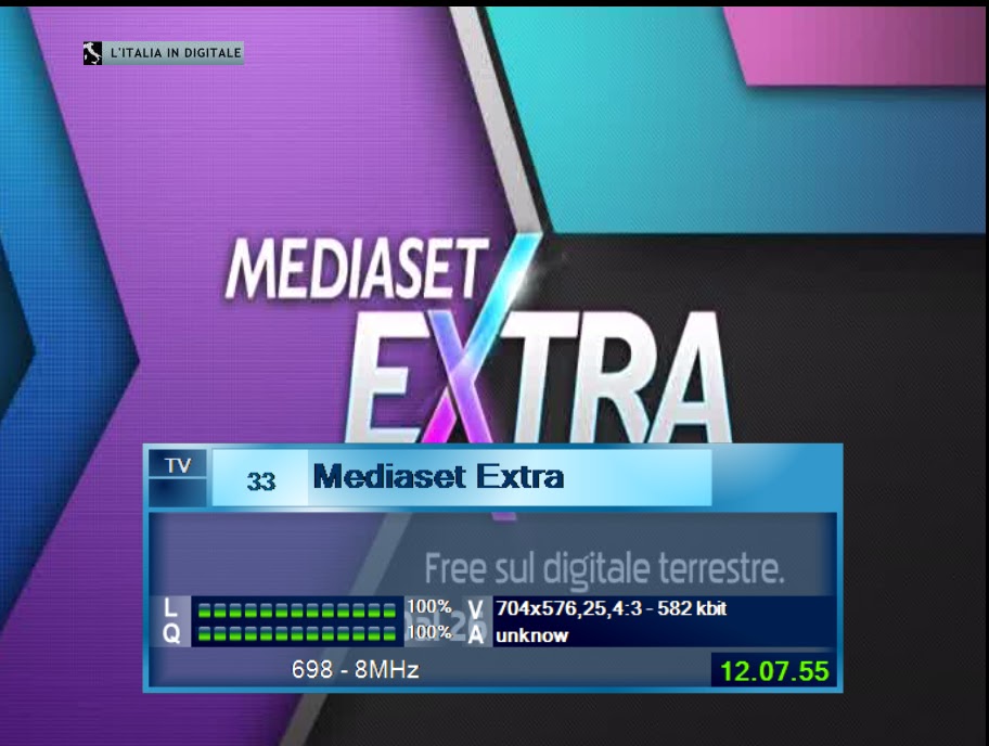 183 - Telemarket 184 - Telemarket 2 Ore 12.50 - NUOVO ORDINAMENTO LCN, ECCO COSA E' SUCCESSO AL MUX 6 DI MEDIASET, SCOMPARE RETE 4 HD. Ch.58 mux MEDIASET 6: In quest'ultimo mux Mediaset sono arrivati i tre canali +1 ed è stato eliminato definitivamente Rete4 HD. Questa la nuova composizione del mux. 104 - Rete4 +1 105 - Canale5 +1 106 - Italia1 +1 505 - Canale5 HD 506 - Italia1 HD Ore 12.20 - NUOVO ORDINAMENTO LCN, ECCO COSA E' SUCCESSO AL MUX 5 DI MEDIASET. Ch.56 mux MEDIASET 5: In questo mux sono arrivati Premium Cinema HD, con LCN 320, e Disney Channel+1, che dovrebbe avere la numerazione LCN 351 ma che, in questo momento, viene memorizzato senza. Sono stati eliminati le due copie di La5, le due di Canale5 +1, Italia1 + e Mya+1 - Premium. Questa la nuova composizione del mux. 351 - Disney Channel+1 - Premium 320 - Premium Cinema HD 382 - Premium Calcio HD 2 Ore 11.55 - NUOVO ORDINAMENTO LCN, ECCO COSA E' SUCCESSO AL MUX 4 DI MEDIASET. Ch.49 mux MEDIASET 4: Saltiamo il terzo mux di Mediaset in quanto è quello del DVB-H e non ha subito modifiche, e passiamo al mux 4 dove è arrivata La 5, con LCN 30, Mediaset Extra invece passa dalla LCN 33 alla 34. Vengono eliminate Premiun Cinema HD ed il duplicato dI Mediaset Extra. Questa la nuova composizione del mux. 4 * Rete4 5 * Canale5 6 * Italia1