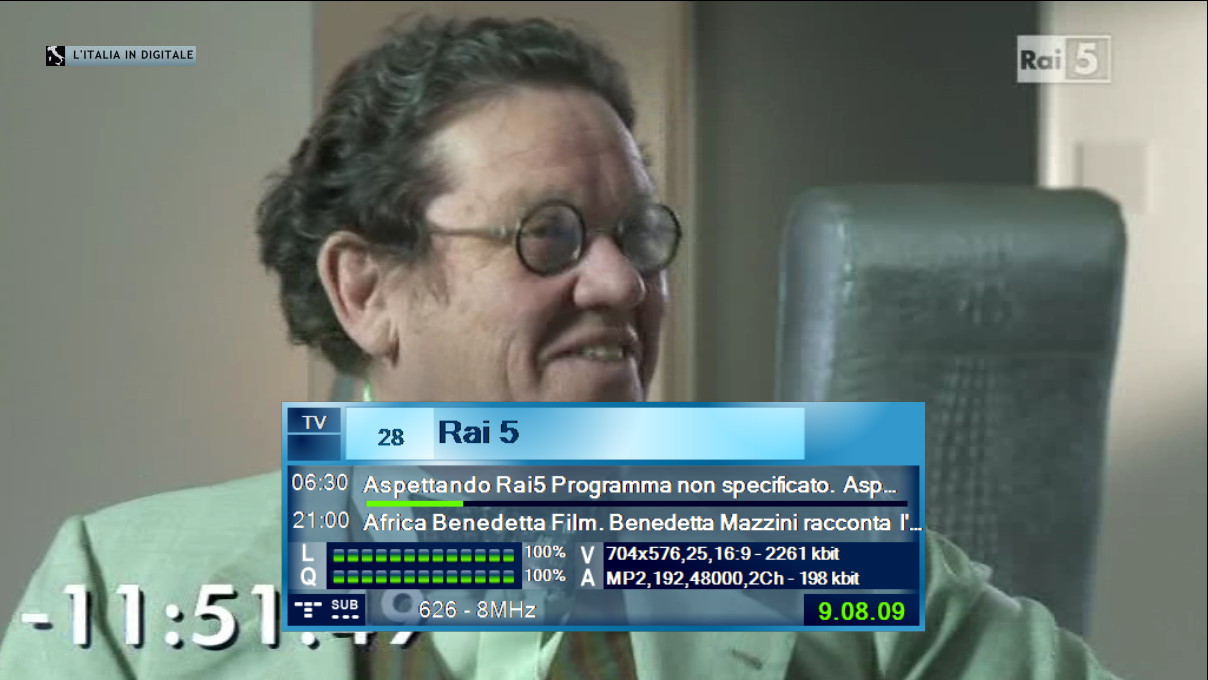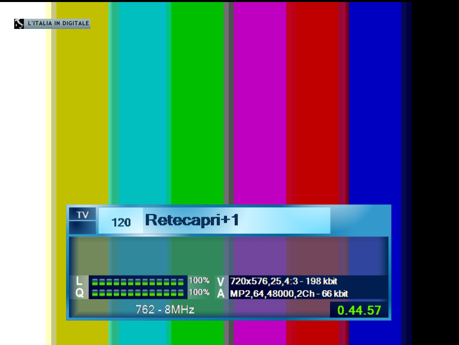 114 - ROMAUNO 5 (ROMAUNO3) 115 - ROMAUNO 6 (ROMAUNO4) Ore 10.05 - NUOVO ORDINAMENTO LCN, ECCO COSA E' SUCCESSO AL MUX 6 DELLA RAI. E' stato modificata la numerazione LCN di Rai Storia, che passa dal 41 al 54, e di Rai News, che passa dal 42 al 48. Questi due canali rimangono come doppioni in quanto sono sintonizzabili rispettivamente anche sul mux 4 e sul mux 1, quindi provocano conflitti LCN. Ore 09.40 - NUOVO ORDINAMENTO LCN, ECCO COSA E' SUCCESSO AL MUX 4 DELLA RAI, E' NATO RAI 5. E' stato modificata la numerazione LCN di Rai Storia, che passa dal 41 al 54, ed è nato il nuovo canale Rai 5, con LCN 23, che ha preso il posto di Rai Extra, che aveva l' LCN 28. Qui sotto potete vedere delle immagini e il video del nuovo canale, è in onda un promo con un countdown in attesa di iniziare stasera alle ore 21.00 la regolare programmazione. Ore 08.50 - NUOVO ORDINAMENTO LCN, ECCO COSA E' SUCCESSO AL MUX 3 DELLA RAI. E' stato modificata la numerazione LCN di Rai 4, passa dal 27 al 21, di Rai Movie, dal 30 al 24, di Rai Premium, dal 32 al 25, di Rai Gulp, dal 23 al 42, di Rai yoyo, dal 24 al 43. Ore 08.30 - NUOVO ORDINAMENTO LCN, ECCO COSA E' SUCCESSO AL MUX 2 DELLA RAI. E' stato modificata la numerazione LCN di Rai Sport 1, che passa dal 37 al 57, di Rai Sport 2, che passa dal 38 al 58, e di TV2000, che passa dal 20 al 28. Ore 08.15 - NUOVO ORDINAMENTO LCN, ECCO COSA E' SUCCESSO AL MUX 1 DELLA RAI. Inziamo ad elencarvi tutto ciò che è cambiato nei mux nazionali, dopo passeremo alle novità dei mux locali. Siccome ci sono stati molti cambiamenti, per quando riguarda la sezione MONTEROTONDO IN DIGITALE pensiamo di aggiornarvi per il momento solo la lista delle FREQUENZE TV , così da poter avere subito una visione completa e in generale di tutti i movimenti, e scrivere qui i dettagli mux per mux. Dopo pian piano aggiorneremo tutte le tabelle con le novità per tutti i canali. Iniziamo dai mux Rai, i canali segnalati riguardano la zona di Roma ma per la maggior parte dei casi è valida per tutta l'Italia. Ch.09 / Ch.11 / Ch.23 - RAI mux 1: E' stato modificata la numerazione LCN di Rai News, passa dal 42 al 48. Ore 01.20 - RISINTONIZZATE LE VOSTRE TV E I VOSTRI DECODER. Vi ricordiamo che per usufruire delle nuove posizioni LCN e per poter sintonizzare anche i nuovi canali, sarebbe necessario una nuova risintonizzione dei vostri decoder e tv, con la cancellazione totale dei canali che avevate memorizzato e una reinstallazione completa. Questo vale in tutta Italia e non solo a Milano e nelle nuove zone di switch off. Ore 01.00 - NON SOLO MODIFICHE LCN, MA ARRIVO ANCHE DI NUOVI CANALI, TG MEDIASET E RETECAPRI +1. Non ci sono solo spostamenti di numerazioni LCN e di cancellazioni di duplicati, ma stanno arrrivando anche nuovi canali, TG MEDIASET nel mux 1 di RETE A sul canale 44, senza numerazione LCN, è in onda un cartello fisso, e Retecapri+1, con LCN 120, nell mux Alpha di RETECAPRI sul canale 57, che ha preso il posto del canale Test e ci sono in onda delle barre colorate. Nelle prossime ore aggiorneremo in dettaglio la composzione dei mux. Potete vedere qui sotto degli scatti dei canali. Ore 00.30 - IN CORSO MODIFICHE NEI MUX NAZIONALI. Oggi entra in vigore la tanta attesa regolamentazione della numerazione LCN, ora sarà più ordinata, è stata assegnata una sola numerazione per ogni singola emittente e questo eviterà i numerosi conflitti che hanno mandato fino ad ieri in tilt i nostri decoder e la nostra pazienza. Pertanto sono in corso movimenti nei mux nazionali non solo nelle zone dello switch-off del nord Italia ma in tutta Italia. Stanno cambiando le numerazioni per inserire quelle assegnate come dalla lista che vi abbiamo già pubblicato, vi ripetiamo il link http://www.sviluppoeconomico.gov.it/pdf_upload/comunicati/phpdwvOox.pdf, e sono in corso, finalmente, anche gli spegnimenti dei tanto diprezzati canali duplicati. Nel corso della giornata vi terremo informati sui cambiamenti ed aggiorneremo eventuali liste dei mux. 25 NOVEMBRE 2010 - Giovedì Ore 19.00 - RITORNANO "ARTE TV" E "DIAMANTE TV" NEL MUX TELETUSCOLO SUL CANALE 53. Ch.53 mux TELETUSCOLO (Monte Cavo): Sono stati di nuovo inseriti i canali ARTE TV, con LCN 2, il suo duplicato denominato Bus TV, con LCN 1, e il canale DIAMANTE TV, con LCN 10, il suo duplicato denominato M SAT TV, con LCN 9. E' stata aggiunta la numerazione LCN ai canali che ne erano privi, New Television, si posiziona ora sul numero 12, il suo duplicato NEW TELEVISION sul numero 13 e TELEPADREPIO sul numero 14. Qui sotto lo z@pping del mux aggiornatao che potete consultare anche alla pagina de "LO Z@PPING TV DI MONTEROTONDO". Ore 15.40 - INZIANO A SPARIRE I DUPLICATI NEL MUX "7 GOLD LAZIO" SUL CH.32. Ch.32 mux 7 GOLD LAZIO (Monte Cavo): Già si iniziano a vedere i cambi di numerazione e sparizione di canali doppioni in vista della nuova regolamentazione della posizione automatica LCN che da domani sarà in vigore. Sono stati eliminati quattro copie di 7 GOLD. E' rimasta solo una che ha cambiato la numerazione LCN in 12. Cambiate anche le numerazioni dei canali Telemarket, che dal 78 passa al 55 (in conflitto con una copia di play.me) e Telemarket 2, che dal 79 passa al 56. Qui sotto lo z@pping del mux che potete consultarlo anche alla pagina de "LO Z@PPING TV DI MONTEROTONDO". 24 NOVEMBRE 2010 - Mercoledì Ore 20.05 - ESAGERATA DUPLICAZIONE DI "REAL TIME" SUL MUX TIMB 1. Ch.47 mux TIMB 1: Sono stati aggiunti ben altri quattro duplicati del canale Real Time, con LCN 30, 31 (in conflitto con LA5 in questa stessa frequenza), 32 e 34. Così adesso sono presenti ben 7 copie di questo canale. Ore 18.50 - "CIELO" VI AVVISA DI RISINTONIZZARE IL DECODER DAL 26 NOVEMBRE. Ch.33 mux RETE A mux 2: Al posto della programmazione di cielo, sul secondo mux di RETE A, è stato inserito un cartello, senza numerazione LCN, che avvisa che, dal 26 novembre, è necessario una nuova risintonizzazione per continuare a vedere il canale. Forse, in occasione dello switch off a Milano,