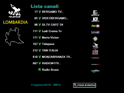 Ore 09.45 - MUX TELEPACE (LOMBARDIA): INSERITE VIDEONOVARA, UNICA E TELERITMO. UHF 39 Mux TELEPACE (LOMBARDIA) Rispetto alla nostra precedente rilevazione segnaliamo l'ingresso di tre nuove emittenti: VideoNovara... (LCN 185), UNICA... (LCN 193) e TeleRitmo... (LCN 605). ![]() ![]() ![]() ![]()