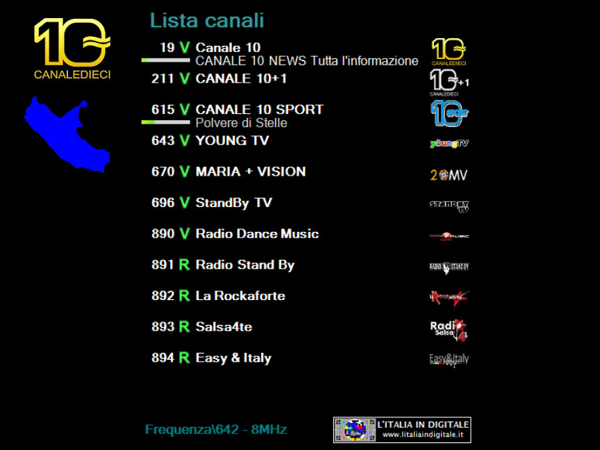 priva di audio (muta). Rileviamo inoltre che è stata rimossa l'emittente di carattere religioso Parole di Vita... che si posizionava sulla LCN 245. ![]()
