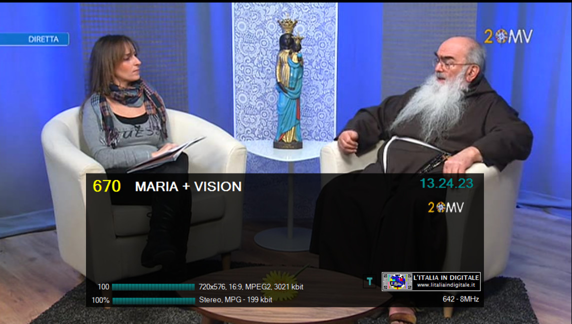 Ore 22.20 - MUX TELEPACE (LOMBARDIA): INSERITA LA NUMERAZIONE 871 A MARIA VISION. UHF 39 Mux TELEPACE (LOMBARDIA) All'emittente religiosa marchigiana MARIA VISION, recentemente approdata nel mux TELEPACE (LOMBARDIA), è stata assegnata la numerazione automatica 871. ![]() ![]() Ricordiamo che Maria Vision è anche veicolata sulla LCN 171 dal provider lombardo SAN PAOLO TELEVISION. ![]()