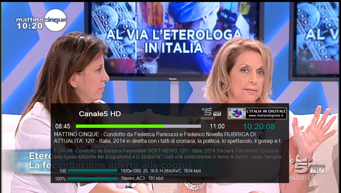 Ore 23.35 - CALCIO CHAMPIONS LEAGUE: LA PARTITA ROMA-CSKA IN SIMULCAST SU CANALE 5, CANALE 5 HD E CALCIO HD EXTRA. UHF 24-29-38 MEDIASET Mux 3 - UHF 49-52 MEDIASET Mux 4 UHF 22-37 Mux LA 3 La partita di Champions League Roma - CSKA Mosca, che si è disputata qualche ora fa allo stadio Olimpico della Capitale, era in onda in diretta e in simulcast su Canale5 (LCN 5), Canale5 HD (LCN 505), CANALE 5 HD - PROVVISORIO (LCN 505) e sempre in chiaro sul canale Calcio HD Extra (LCN 379) del MEDIASET Mux 3. Inoltre su questi canali in alto a destra durante tutto il corso della partita era presente la scritta ESCLUSIVA MEDIASET. ![]() ![]()