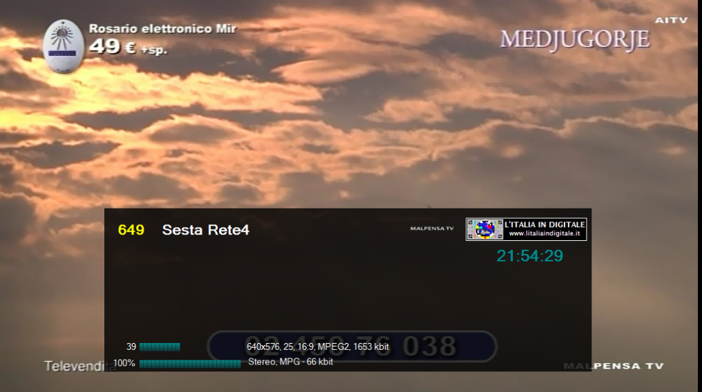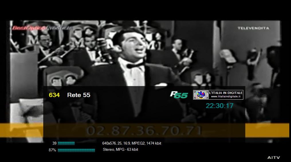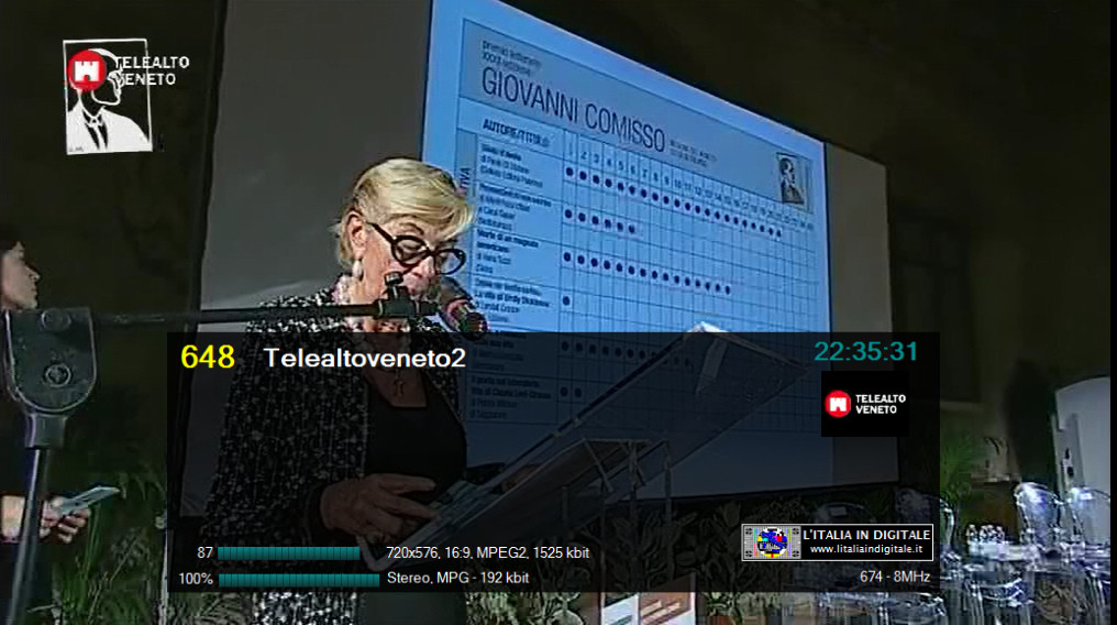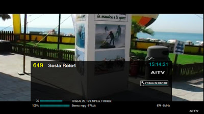 Ore 12.00 - MUX SESTA RETE (PIEMONTE): CAMBIO DI FREQUENZA DAL RIPETITORE DI ASTI - AZZANO, AGGIORNATA LA GRIGLIA DEI CANALI. UHF 29-46 Mux SESTA RETE (PIEMONTE) In PIEMONTE e più precisamente ad ASTI, dalla locale postazione Radio-TV di AZZANO, il provider piemontese SESTA RETE ha modificato la sua frequenza di trasmissione, abbandonando per questa zona l' UHF 46 e riposizionandosi sull' UHF 29, già utilizzata dal mux RETE 55 (PIEMONTE) e spenta da un paio di anni. Questo multiplex ha all'attivo ben 24 canali TV e di seguito, analizzandolo per numerazione LCN, elenchiamo i principali cambiamenti avvenuti negli scorsi mesi. Sulla LCN 98 non sono più presenti le trasmissioni di EXIART ma è subentrata l'emittente AMICI ANIMALI & NATURA, anche se l'identificativo del canale resta sempre EXIART. Al numero 182 non è più presente TELETIME (ora in onda solo sulla LCN 687) ma è stata inserita SPORTELEVISION, mentre sulla LCN 248 è presente un'altra copia di Amici Animali e Natura (in precedenza questo slot, nonostante il corretto identificativo, era a schermo nero). RETE 55 (LCN 634) risulta senza identificativo, il nostro ricevitore lo sintonizza come TV Service 310. Inoltre sulla LCN 605 non c'è più Anime per Cristo ma è ritornata Vetrina Italia, duplicato di AITV (LCN 295), mentre su Travel Tv Medjugorie 2 (LCN 681) non è più in onda la programmazione di Medjugorie TV Italia ma è trasmessa l'ennesima copia di AITV. Infine su TELETIME (LCN 687) non è più presente il logo di RETE 182. Abbiamo aggiornato la griglia dei canali e lo z@pping TV del mux SESTA RETE (PIEMONTE). ![]() 7 APRILE 2014 - Lunedì Ore 19.55 - MUX SESTA RETE (PIEMONTE): MODIFICATA LA COMPOSIZIONE DEI CANALI, NUOVI LOGHI PER RETE 182 E TELETIME. UHF 46 Mux SESTA RETE (PIEMONTE) Ancora novità nel mux SESTA RETE (PIEMONTE). E' stata reinserita Malpensa TV sulla LCN 173 che trasmette la programmazione di AITV, mentre sulla LCN 237 è stata eliminata TELEFANTO. Sesta Rete HD che si posizionava sulla LCN 585 trasmette ora priva di numerazione automatica, mentre sulla LCN 605 è stata eliminata Vetrina Italia (che trasmetteva l'ennesima copia di AITV) al suo posto fa il suo ingresso la tv religiosa Anime per Cristo. ![]() ![]() ![]() RETE 182 (LCN 182) e TELETIME (LCN 687) hanno adottato nuovi loghi di stazione: RETE 182 è stato sensibilmente rimpicciolito nelle dimensioni con alcune differenti forme all'interno dello stesso, mentre il logo di TELETIME è ora bicolore, azzurro e bianco. Ricordiamo che RETE 182 e TELETIME trasmettono sia sulla LCN 182 sia sulla 687 la stessa programmazione, con il logo di RETE 182 posizionato in basso a sinistra e con quello di TELETIME posizionato in basso a destra (in precedenza quello di RETE 182 era sito in basso a destra e quello di TELETIME in basso a sinistra). ![]() ![]() Qui sotto i loghi precedentementi usati e le immagini con la loro diversa posizione in sovraimpressione. ![]() ![]() Infine è riapparso un canale dati a schermo nero con il solo identificativo Amici Animali e Natura. Abbiamo aggiornato la griglia dei canali e lo z@pping TV del mux SESTA RETE (PIEMONTE). Consulta anche la lista aggiornata delle emittenti TV A TORINO e la lista LCN TORINO. ![]() 16 FEBBRAIO 2014 - Domenica Ore 12.50 - MUX SESTA RETE (PIEMONTE): ARRIVANO TELEFANTO E RETE 55, AITV AL POSTO DI TELEALTO VENETO. UHF 46 Mux SESTA RETE (PIEMONTE) L'emittente TeleFanto fa il suo ingresso in Piemonte nel mux SESTA RETE sulla LCN 237. ![]() Rete 55 (LCN 634),che era presente come canale dati a schermo nero, è adesso regolarmente on air. ![]() Su TELEALTOVENETO 3 (LCN 99) e su Telealtoveneto2 (LCN 648) non è più presente la programmazione dell'omonima televisione veneta ma quella di AITV. ![]() ![]() Infine su Travel Tv Medjugorje 2 (LCN 681) torna in onda la programmazione di Medjugorje Italia Tv al posto di AITV. ![]() Abbiamo aggiornato la griglia dei canali e lo z@pping TV del mux SESTA RETE (PIEMONTE). Consulta anche la lista delle emittenti che si ricevono a TORINO. ![]() 15 GENNAIO 2014 - Mercoledì Ore 11.40 - MUX SESTARETE (PIEMONTE): ARRIVA EXIART, ELIMINATE RETE 188 E CANALE ARTE. UHF 46 Mux SESTA RETE (PIEMONTE) Ancora novità nella versione pirmontese del mux SESTA RETE, come sempre le riassumiamo elencandole in ordine di LCN. Sulla LCN 98 è stata eliminata CANALE ARTE, insieme alla sua copia denominata CANALE ARTE. che si posizionava al numero 697. Ricordiamo che CANALE ARTE qui in Piemonte è recentemente migrata con la numerazione LCN 697 nel mux PRIMANTENNA. Proprio sulla LCN 98 fa il suo ingresso EXIART, mentre Rete 182 (LCN 182) risulta senza identificativo in EPG, il nostro software di ricezione lo memorizza con il nominativo di TV Service 105, la programmazione on air è sempre quella di Rete 182. Esce di scena Rete 188 dalla medesima numerazione (LCN 188), al suo posto è stata inserita un'ennesima copia (sono in totale 10) di AITV anche se il canale viene identificato Sesta Rete1. Eliminato anche il canale dati (a schermo nero) denominato Amici Animali & Natura che si posizionava con la LCN 248. Abbiamo aggiornato la griglia dei canali e lo z@pping TV del mux SESTA RETE (PIEMONTE). ![]() ![]() ![]() ![]() 2 DICEMBRE 2013 - Lunedì Ore 22.35 - MUX SESTA RETE (PIEMONTE): ARRIVA RETE 182, ELIMINATA LA 4 ITALIA E ALTRI AGGIORNAMENTI. UHF 46 Mux SESTA RETE (PIEMONTE) Rispetto alla nostra ultima rilevazione di questo multiplex piemontese segnaliamo che non è più a schermo nero Rete 182 (LCN 182) ma è partita la regolare programmazione. Oltre il nuovo logo di Rete 182 è presente a sinistra dello schermo anche il logo di TELETIME. Questa emittente ha anche una sua copia sulla LCN 687 con identificativo TELETIME. E' stato eliminato La 4 Italia (LCN 635), nella medesima LCN è stato reinserito Risparmione Channel che a sua volta ritrasmette AITV (LCN 295) con una pessima qualità video. Infine sulla LCN 648 Telealtoveneto2 non trasmette più la programmazione di AITV ma è una copi