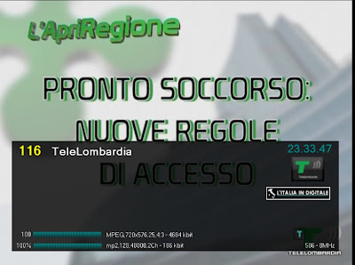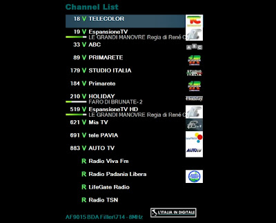 alla pronuncia del Tar le trasmissioni su Milano restano mute." Ore 12.55 - MUX PRIMARETE LOMBARDIA - MUX ESPANSIONE TV: NUOVE CONFIGURAZIONI, AGGIORNATI LA GRIGLIA DEI CANALI E LO Z@PPING TV. Rispetto alla nostra precedente rilevazione, aggiorniamo la composizione di questi multiplex. Nei prossimi mesi (probabilmente entro fine anno) il mux di PRIMARETE LOMBARDIA sarà "rottamato" per far spazio alle nuove frequenze telefoniche LTE. Alcuni canali sono ora disponibili nel mux di ESPANSIONE TV. Per questo motivo ricapitoliamo la situazione aggiornata di questi due multiplex. UHF 61-64 Mux PRIMARETE LOMBARDIA: Iniziamo andando per ordine di LCN: TELECOLOR è ora trasmessa senza la sua numerazione automatica (18). Fa il suo ingresso La 8 (LCN 81), mentre PRIMARETE (ed una sua copia nominata in epg Primarete) sono in onda senza numerazione LCN (rispettivamente 89 e 184). UHF 51 Mux ESPANSIONE TV: Arrivano in questo mux i canali TELECOLOR (LCN 18), PRIMARETE (LCN 89), la sua copia nominata Primarete (LCN 184) e STUDIO ITALIA (LCN 179), quest'ultima a schermo nero. Abbiamo aggiornato le pagine con la griglia dei canali e lo z@pping TV dei due multiplex PRIMARETE LOMBARDIA ed ESPANSIONE TV. 09 AGOSTO 2012 - Giovedi Ore 23.00 - IN EVIDENZA - BRESCIA: ATTIVATA LA TELESTREET DI UN CENTRO SOCIALE. Vi ricordate le Telestreet? Si trattava di piccole tv di quartiere che trasmettendo un debole segnale via etere, si rivolgevano a poche centinaia di telespettatori di un territorio ristretto: una strada, un quartiere, un gruppo di case o un condominio. Un esperimento che non aveva avuto fortuna nel nostro paese, visto che la diffusione in streaming era sicuramente più indicata per chi voleva cimentarsi in un'attività televisiva amatoriale, inotre la completa digitalizzazione del territorio aveva del tutto seppellito queste realtà. A dire il vero esistono alcune realtà in Italia che operano su modestissime porzioni di territorio ed utilizzano ancora la tecnica analogica, ne abbiamo parlato più volte nelle nostre pagine, ma è la prima volta che portiamo alla vostra attenzione una Telestreet che si avvale della trasmissione in digitale terrestre. La notizia arriva da Brescia, dove viene ricevuta la tivù dell'emittente radiofonica Radio Onda d'Urto del centro sociale Magazzino 47 sulla frequenza 205.500 mhz VHF 09. Il mux è denominato "CTV TELESTREET" con un unico slot appunto quello di Ctv, trasmesso in QPSK da da un ripetitore sito in via Serenissima a Brescia. Sul loro sito http://www.ctv.bs.it viene data la notizia delle trasmissioni sperimentali in digitale terrestre sull'LCN 147. Ringraziamo per la segnalazione e per le immagini Nicola di Brescia. Le altre immagini sono tratte dal gruppo Facebook di Ctv Telestreet. 06 AGOSTO 2012 - Lunedì Ore 20.45 - MILANO: RADIO REPORTER E RADIO GLOBALE MUTE. La scorsa notte, intorno all' 01.45 abbiamo rilevato che Radio REPORTER (FM 103.7 da Valcava) e Radio GLOBALE (FM 101.5 da Via S. Galdino a Milano) erano in portante muta. 04 AGOSTO 2012 - Sabato Ore 18.45 - MILANO: SPENTA RADIO PADANIA, ARRIVANO OTTO FM E 1000NOTE. Da un paio di giorni risultano spenti i 103.5 FM di Radio Padania dell'impianto situato sulla torre Velasca a Milano. Si ascoltano pertanto OttO FM sui 103.4 e nella zona est anche Radio 1000Note sui 103.5, entrambe con una discreta fruibilità. Sporadicamente abbiamo anche sintonizzato con difficoltà anche un debolissimo FM 103.5 di Gamma Radio. 31 LUGLIO 2012 - Martedì Ore 22.35 - MUX TELESTAR: ADDIO ANIME GOLD? UHF 41 Mux TELESTAR LOMBARDIA: Da qualche giorno non sono più in onda i cartoni animati di Telestar 1 Anime Gold (LCN 285), in video è presente solo il logo in basso a destra di Telestar, la programmazione è composta da televendite e chat line. Abbiamo aggiornato la griglia canali e lo z@pping TV del mux TELESTAR LOMBARDIA. 26 LUGLIO 2012 - Giovedì Ore 21.35 - MUX TELEPACE (LOMBARDIA): AGGIORNATA LA GRIGLIA CANALI E LO Z@PPING TV. UHF 39 Mux TELEPACE (LOMBARDIA): Modifichiamo la composizione di questo multiplex, segnalando rispetto alla nostra precedente rilevazione, che DI.TV MUSICA (LCN 649) è stato sostituito da SHALOM TV, che trasmette la programmazione di Medjugorje TV. Abbiamo aggiornato la griglia dei canali e lo z@pping TV del mux TELEPACE (LOMBARDIA). Ore 09.55 - MUX VIDEOBERGAMO: ARRIVA LUCIANO&LUCIANA, AGGIORNATI LA GRIGLIA CANALI E LO Z@PPING TV. VHF 07 Mux VIDEOBERGAMO: Aggiorniamo la composizione di questo mux bergamasco, ricevibile a MILANO solo in alcune zone, segnalando l'arrivo di un canale denominato Luciano&Luciana. Al momento l'emittente non ha nessuna numerazione LCN. Abbiamo aggiornato la griglia dei canali e lo z@pping tv del multiplex VIDEOBERGAMO. 15 LUGLIO 2012 - Domenica Ore 11.05 - PIU' BLU LOMBARDIA MUX 1: SPENTI L' UHF 54 E 69. VHF 10 / UHF 68 PIU' BLU LOMBARDIA Mux 1: Da alcuni giorni non risultano operative le frequenze UHF 54 e UHF 69 che veicolavano il PIU' BLU LOMBARDIA Mux 1. Sono regolarmente diffuse le altre frequenze di questo mux ovvero il VHF 10 irradiato da piazzale Biancamano (per la zona di Milano) e l' UHF 68 dalla postazione di Valcava Passo (LC). Abbiamo aggiornato la lista delle emittenti TV che si ricevono a MILANO e LODI. 24 GIUGNO 2012 - Domenica Ore 10.50 - MUX VIDEOSTAR: AGGIORNATA LA GRIGLIA DEI CANALI E LO Z@PPING TV. UHF 24 Mux VIDEOSTAR: Abbiamo aggiornato la composizione lombarda e lo z@pping TV delle emittenti trasmesse dal mux VIDEOSTAR. Rispetto alla nostra precedente rilevazione, segnaliamo che BAZAR ora occupa l' LCN 117 (prima aveva la posizione 112). Pet Mania TV (LCN 631) è stato eliminato, al suo posto è in onda una copia di BAZAR. Sono state inoltre aggiunte le copie di Videostar, Videostar 2 e Videostar Sport, tutte senza numerazione LCN. Inserite anche le emittenti radiofoniche Radio Iglesias (LCN 742), Radio Millennium (LCN 791), VOR Voice of Russia - Test (LCN 792) e un duplicato di VD Radio Star (LCN 790). 19 GIUGNO 2012 - Martedì Ore 22.15 - MUX VID